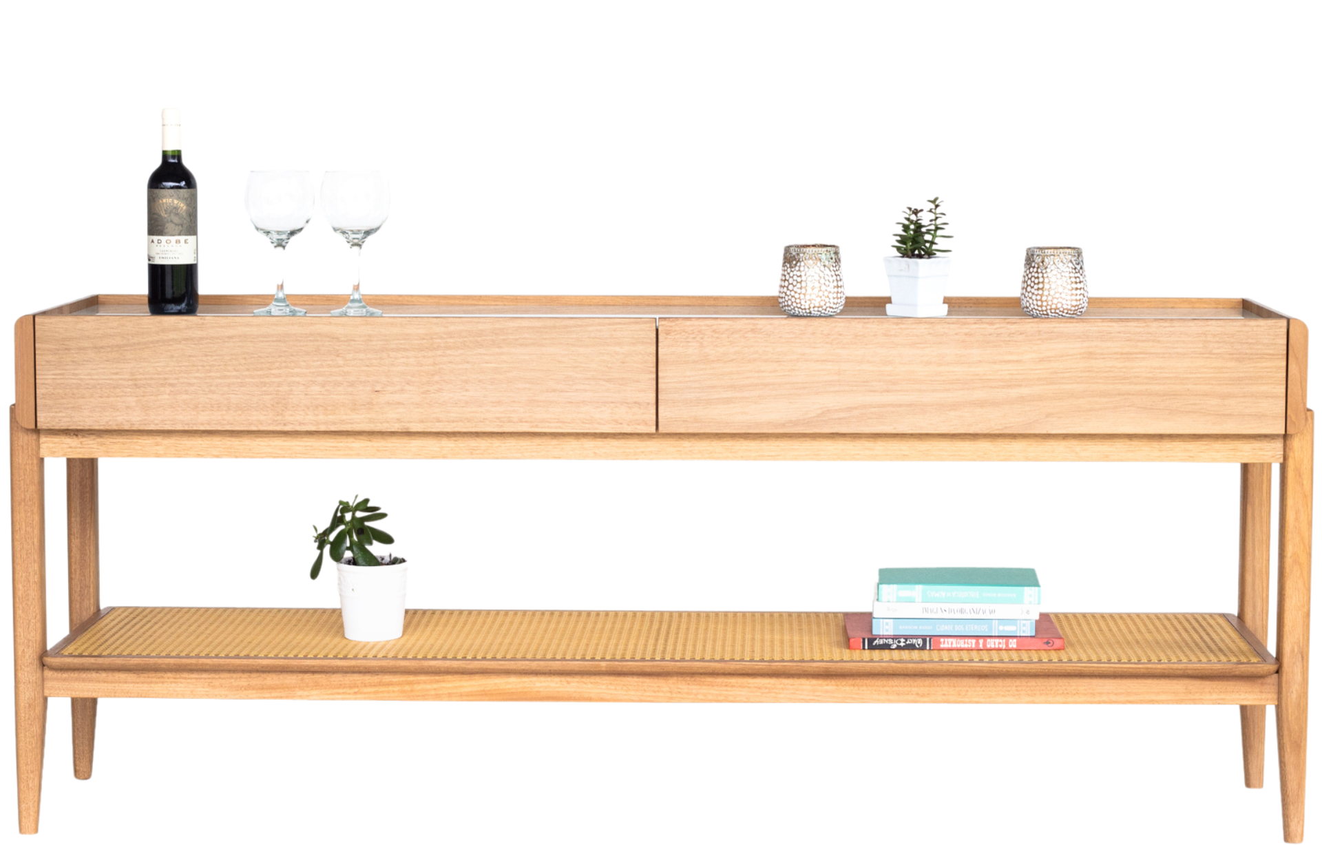 Aparador Variety com design limpo e elefante, com inspiração no design brasileiro comtemporâneo. Este tipo de móvel é muito procurado para composições que unem função e estética, especialmente em decorações que misturam estilo retrô com minimalismo contemporâneo.