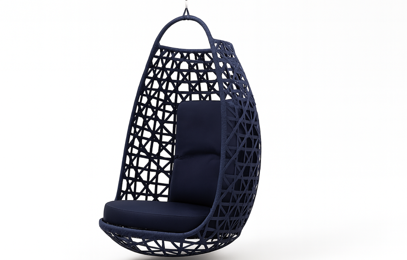 Estrutura em alumínio, pintura eletrostática e um trabalho manual em corda náutica