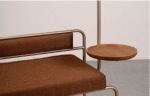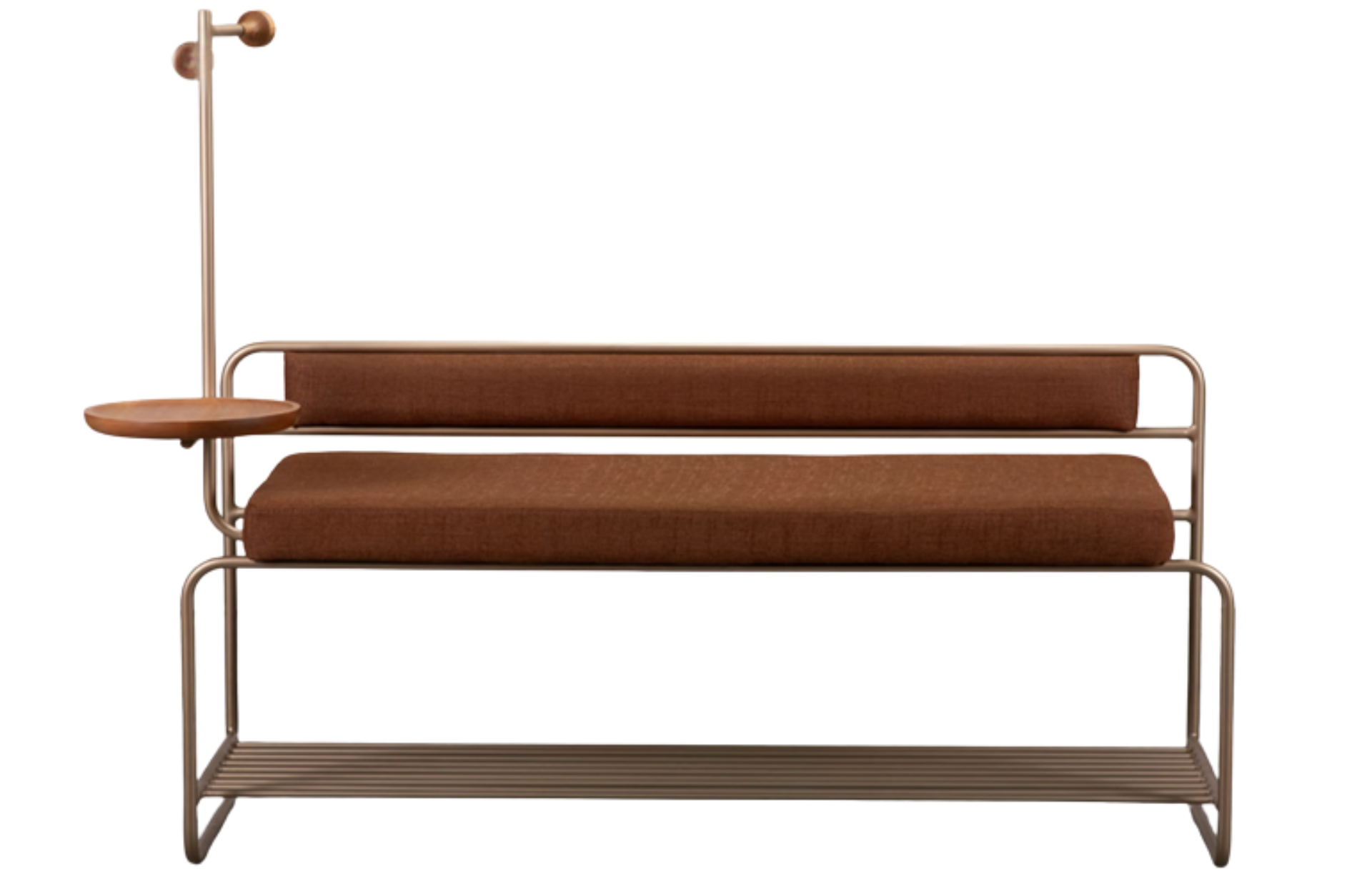 Banco Garub funcional com sapateira, estrutura de metal e assento estofado para maior conforto. Opção com e sem cabideiro. Bandeja do cabideiro em madeira natural.