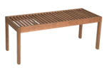 Banco de madeira com assento ripado, sem encosto.