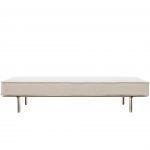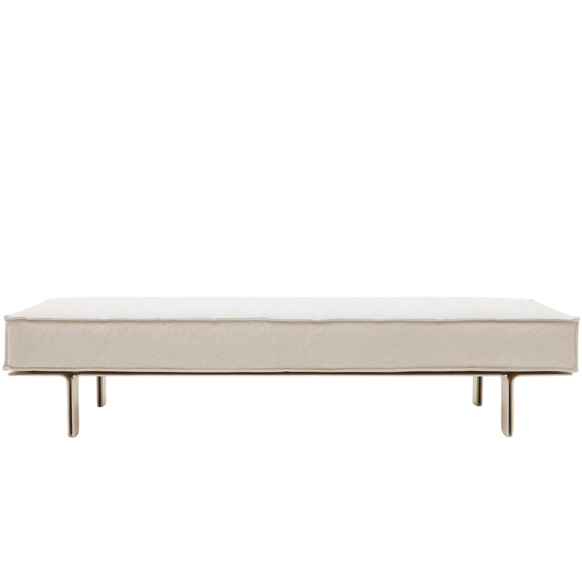 Base em aço curvado pintado, com espuma de diversas densidades. Revestimento em couro e tecidos. Tratamento anti-corrosão no metal do chassis.