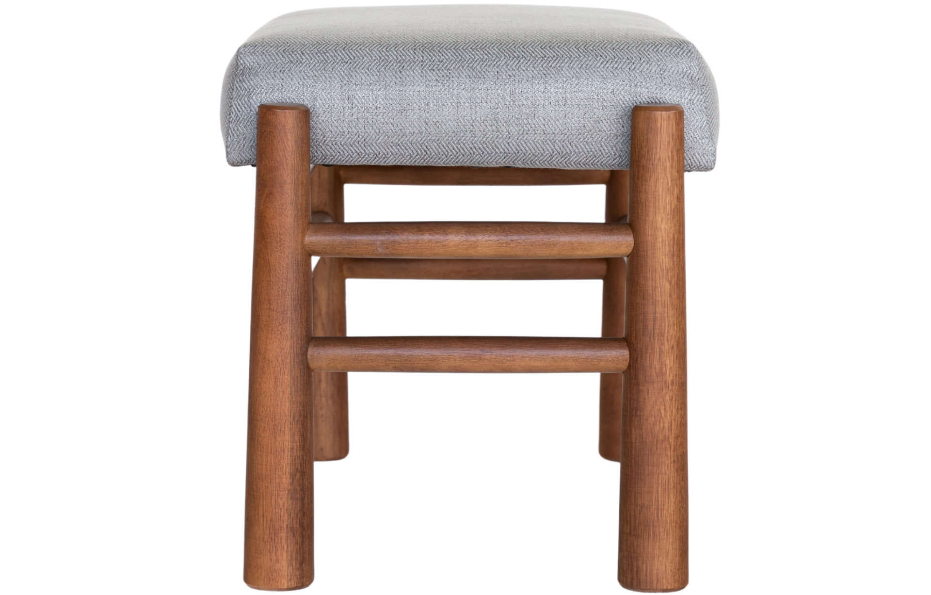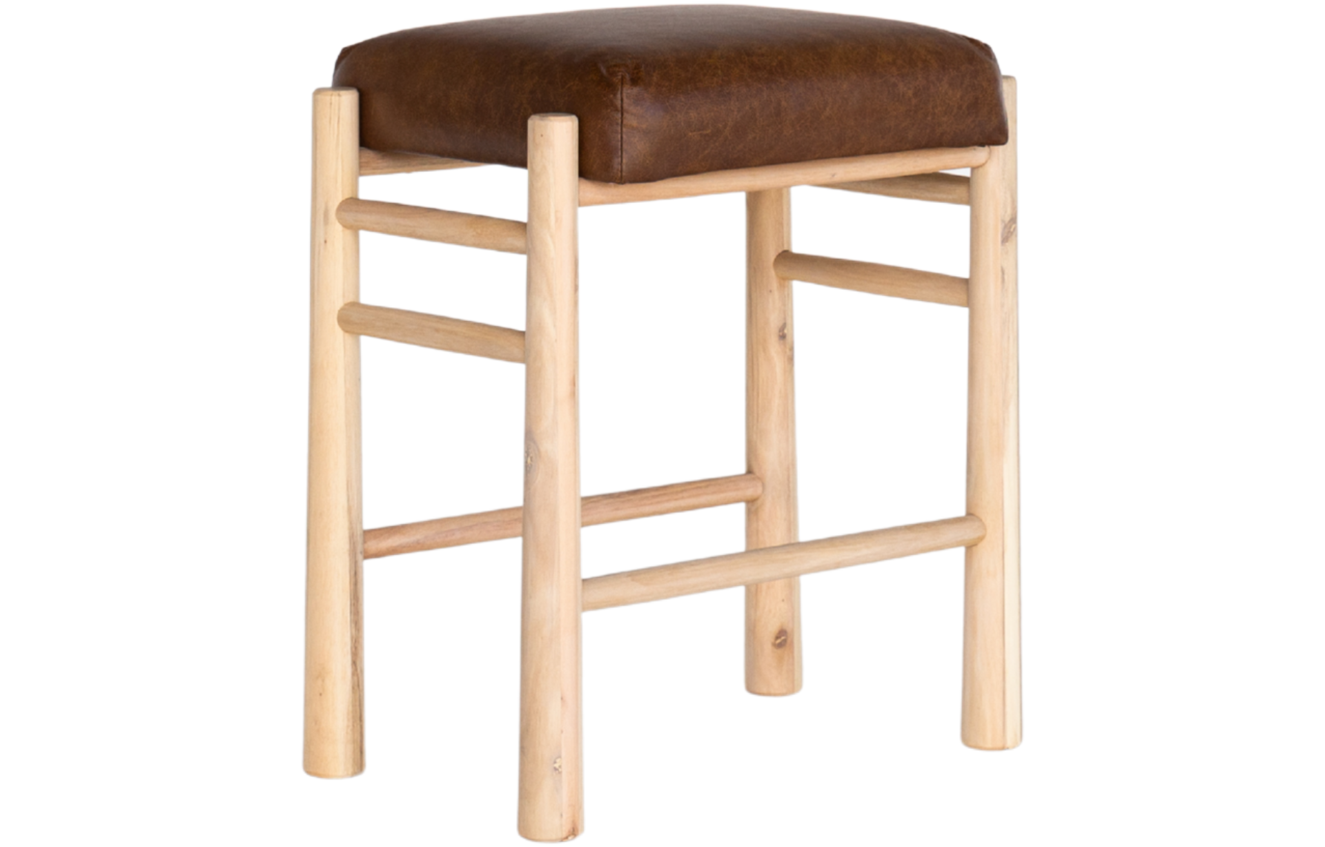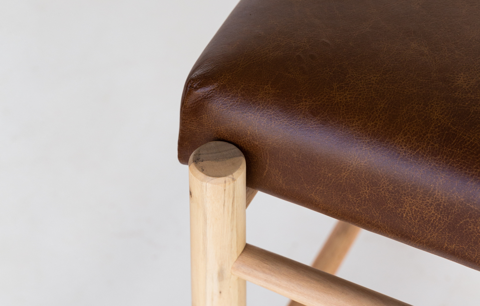 Banco Swift Concha com estrutura em madeira maciça, possui assento e encosto estofados que garantem conforto. As linhas retas da base e a leve curvatura do assento criam um design moderno e funcional, ideal para cozinhas ou áreas gourmet.