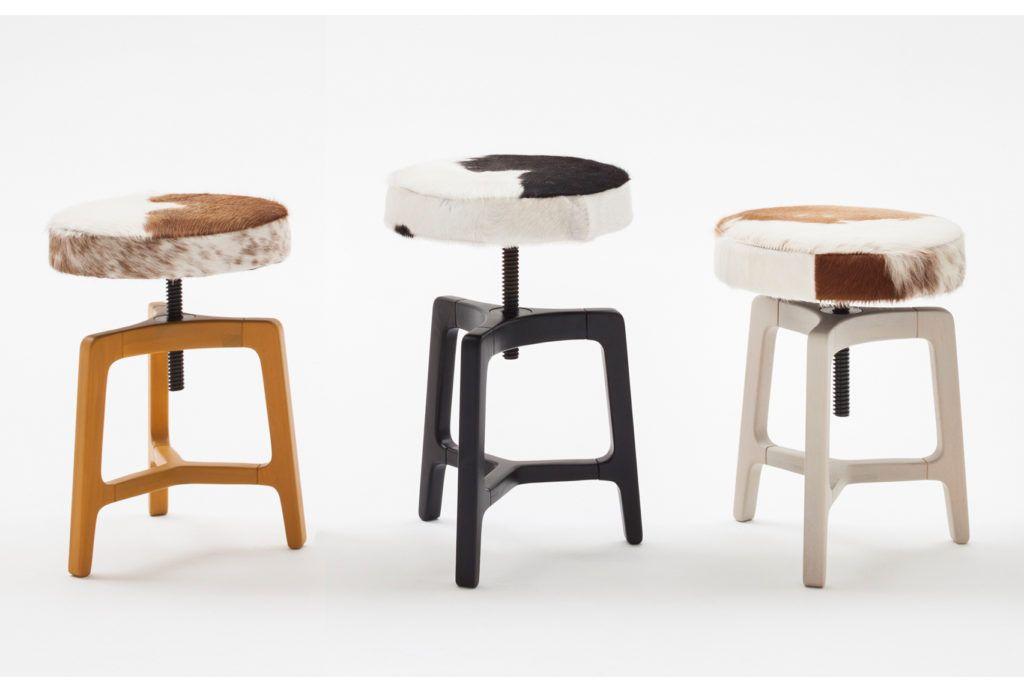 Banco com estrutura de madeira certificada disponível em diversos acabamentos. Assento com tapeçaria em couro natural liso ou com pelo e tecidos leves e pesados (lonas) em algodão.