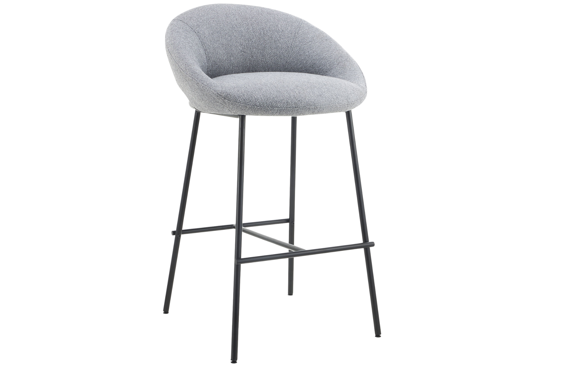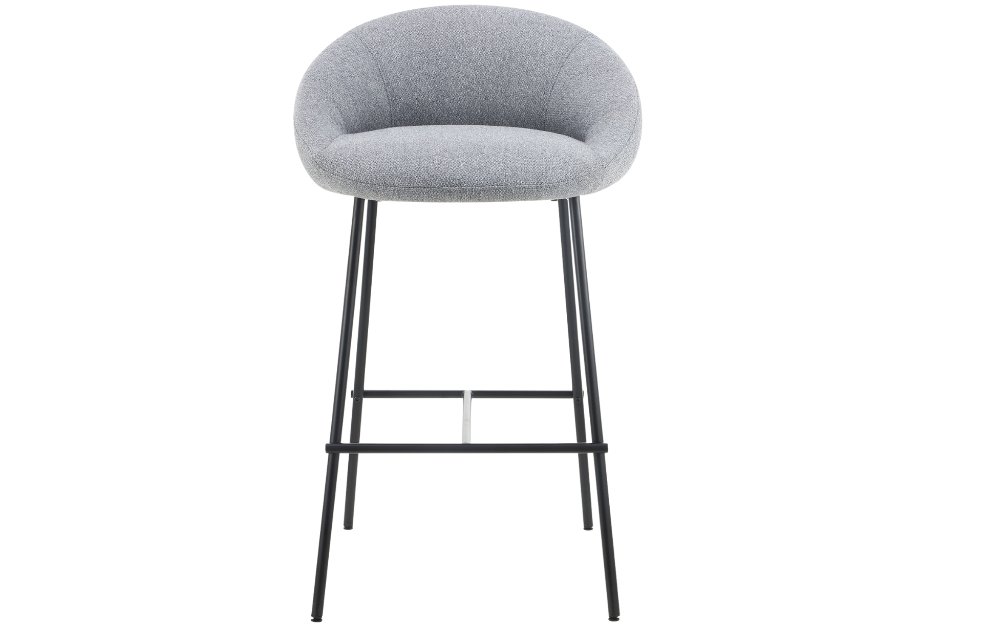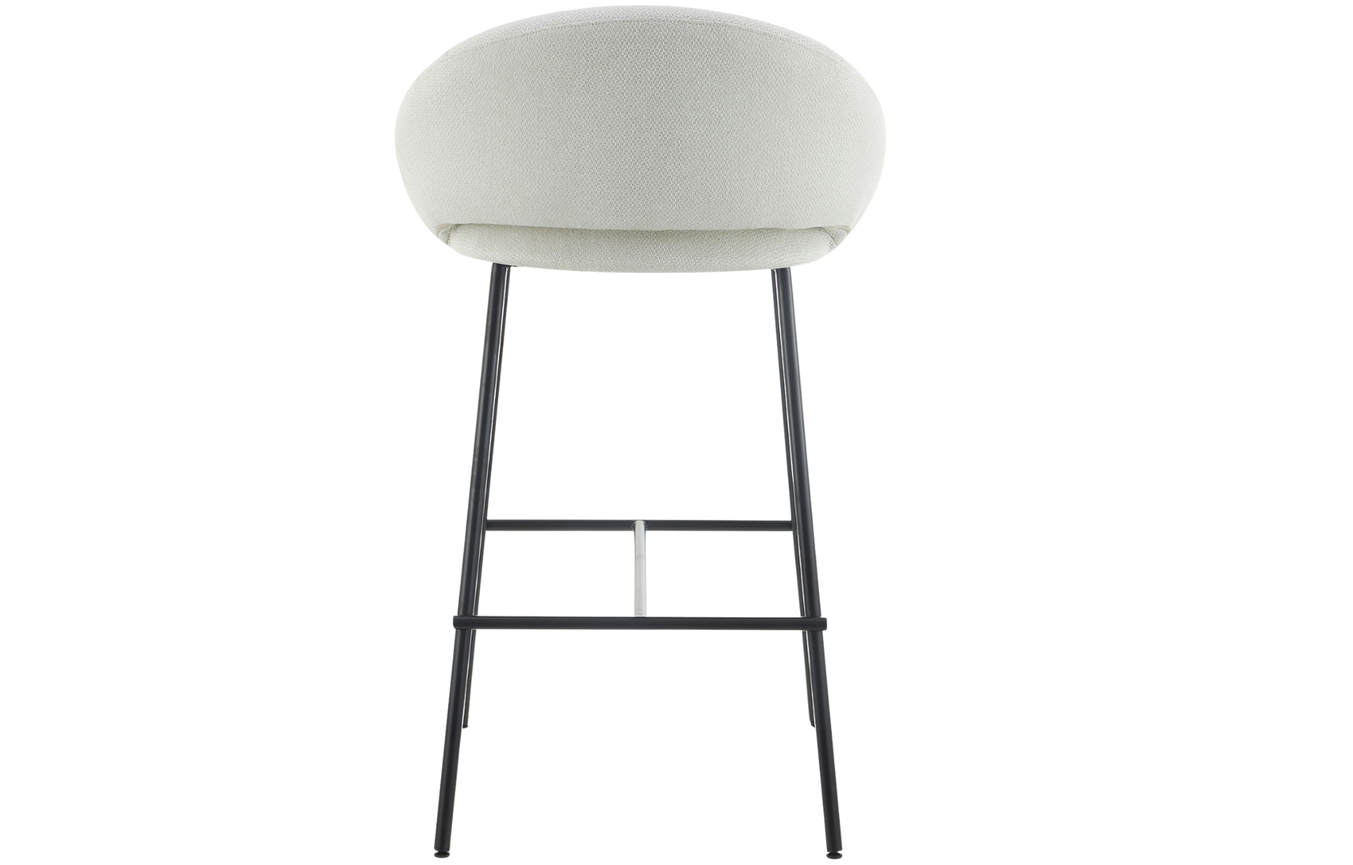 Banqueta Barbosa com assento e encosto estofado e pernas em aço.