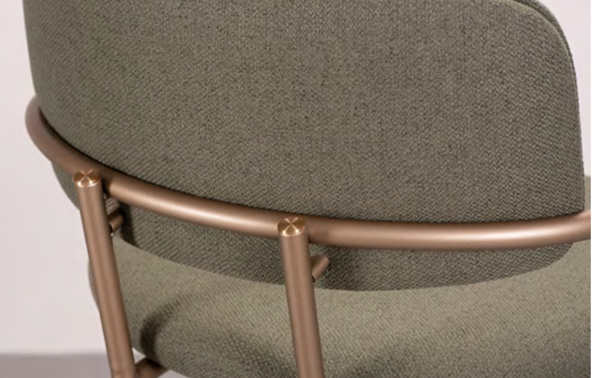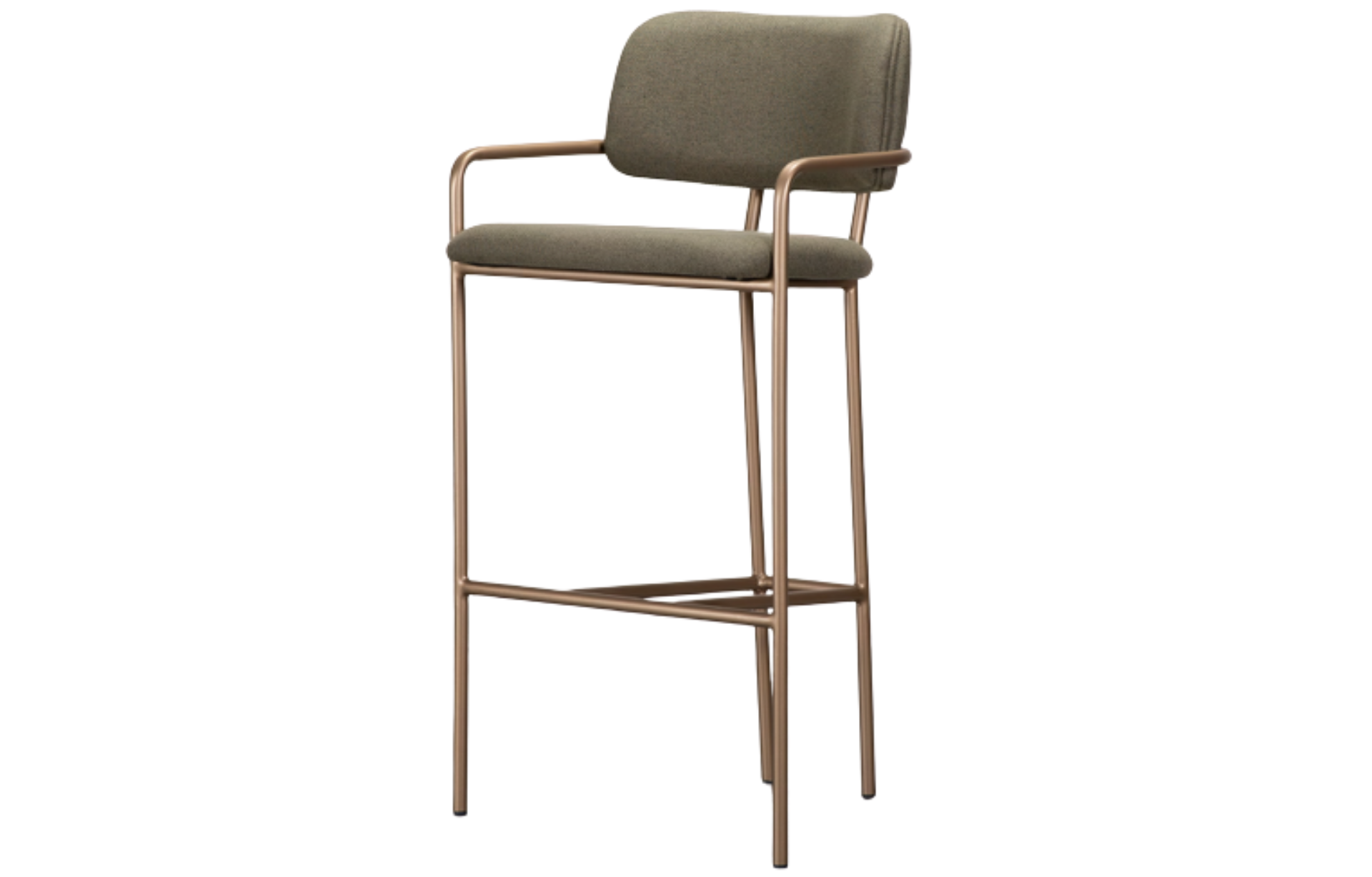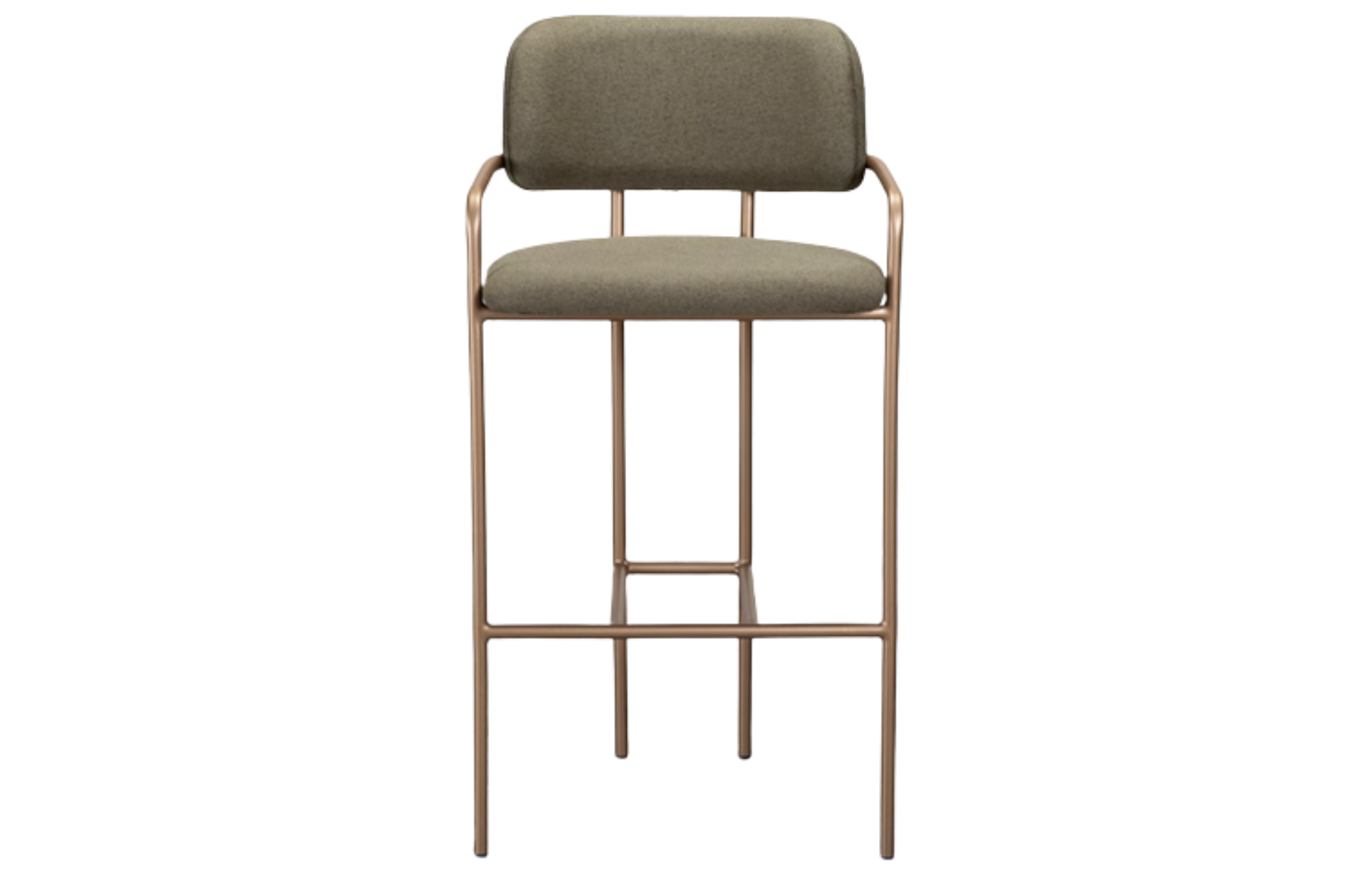 Banqueta Dawn com assento e encosto estofados para conforto superior. Estrutura em aço carbono pintado, resistente e sofisticada.