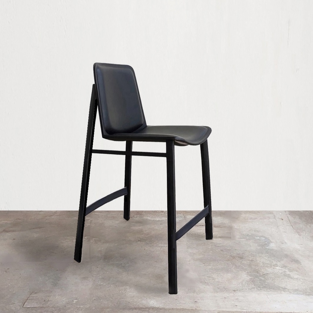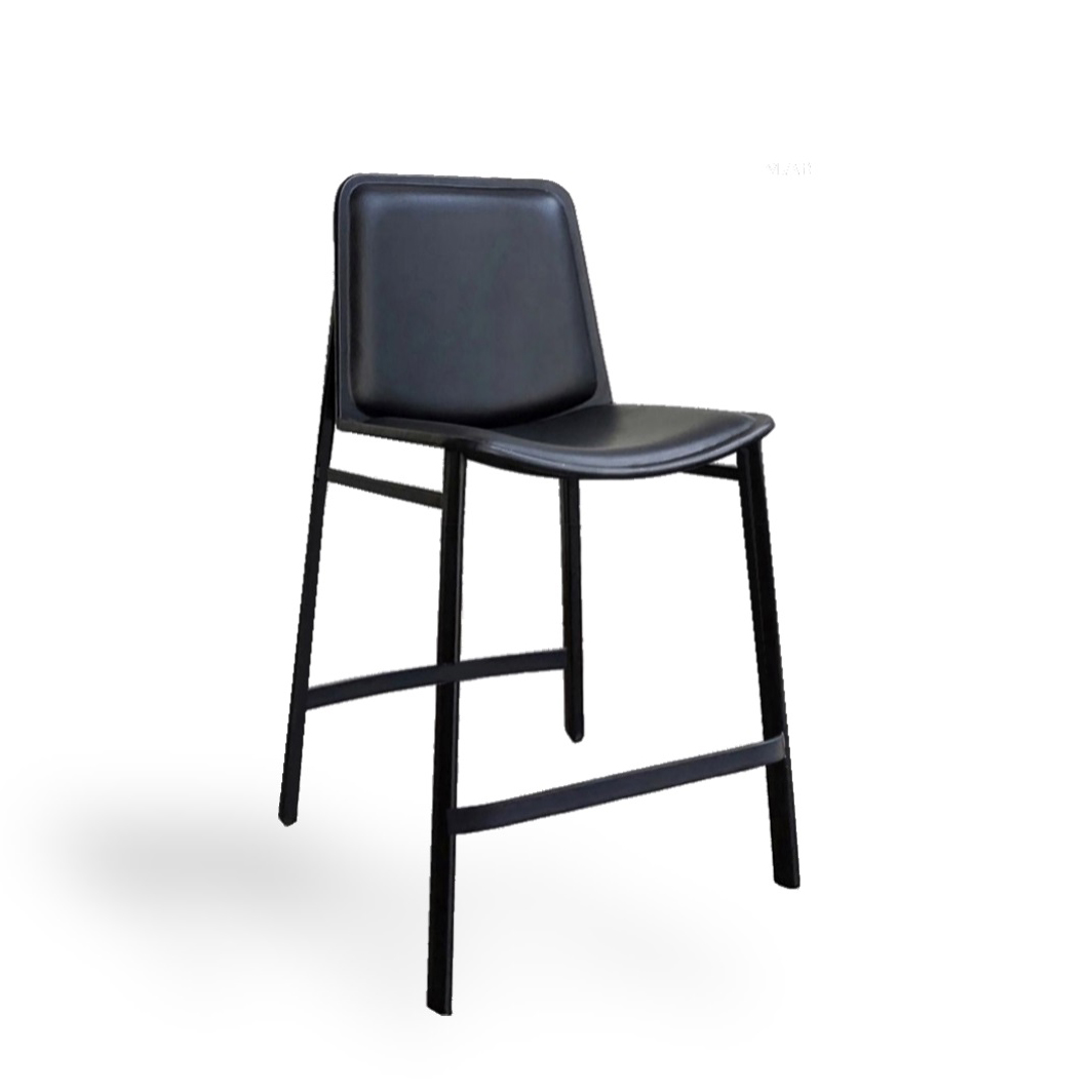 Banqueta com estrutura em metal revestida com couro ecosoft e assento estofado.