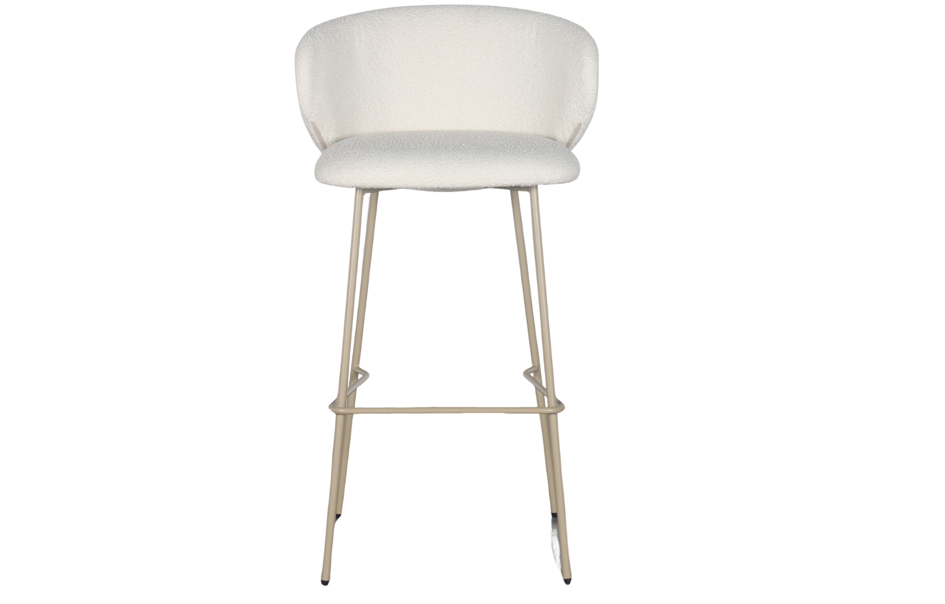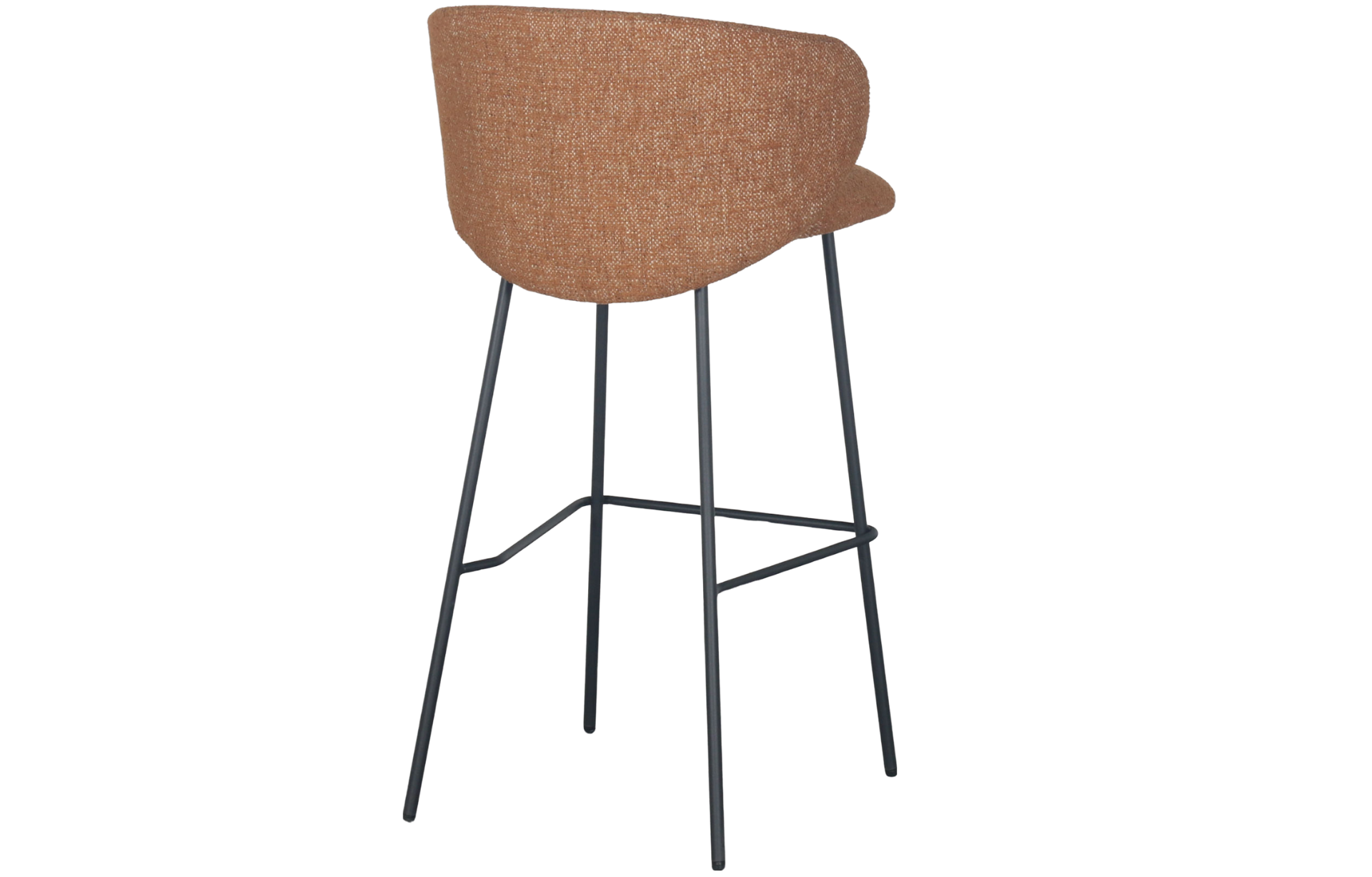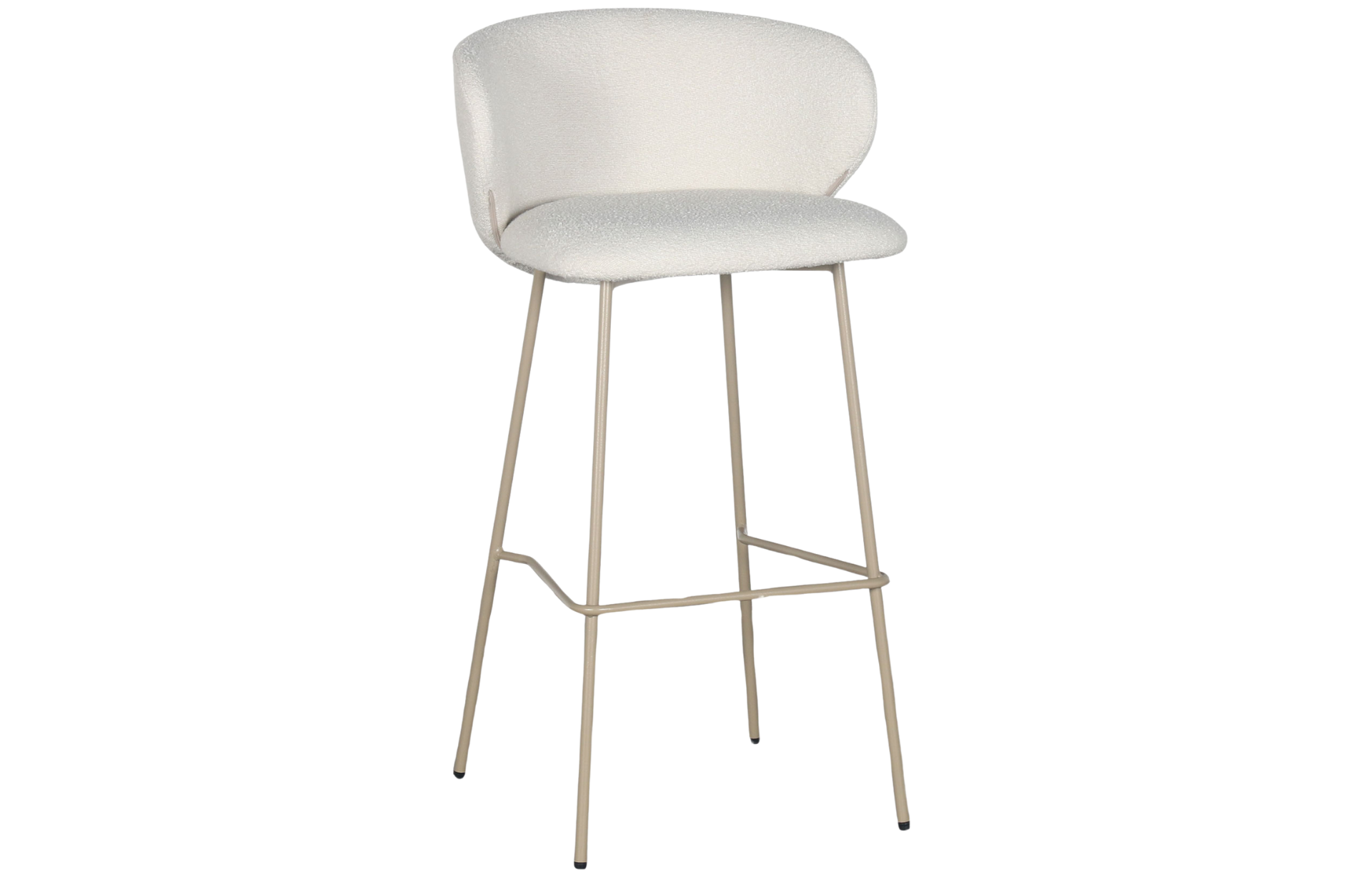 Banqueta Francis revestida em tecido e base em aço pintado à pó.