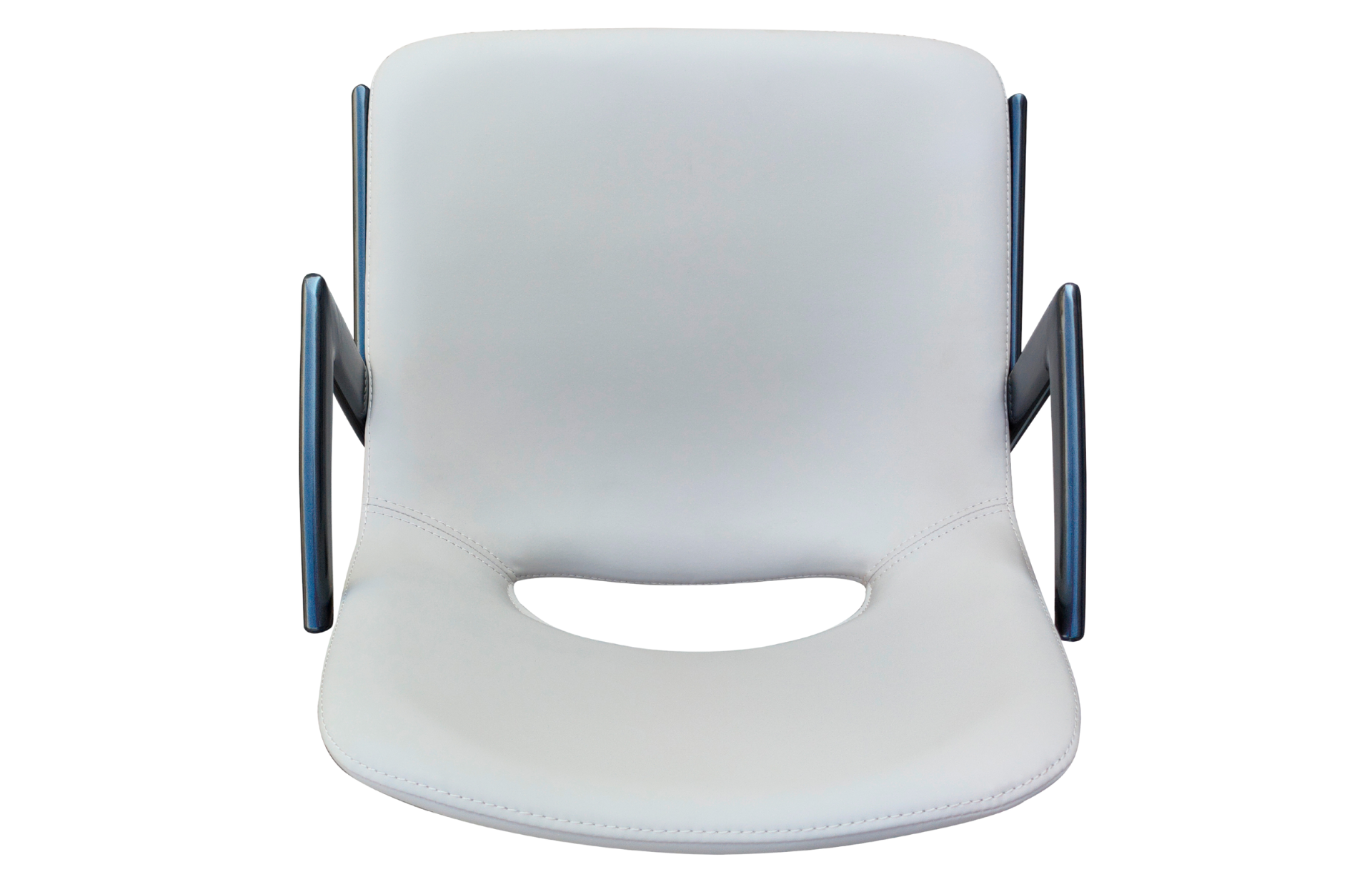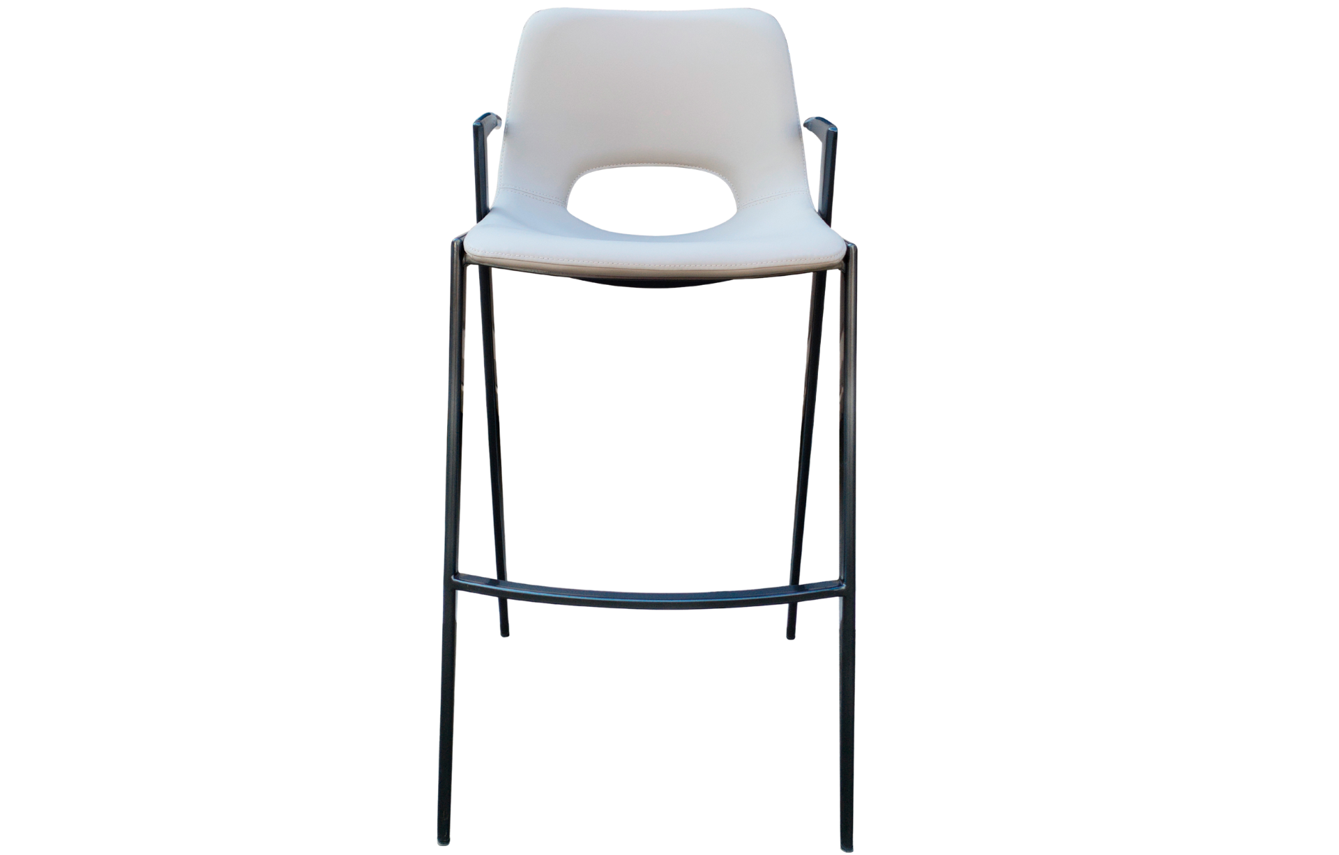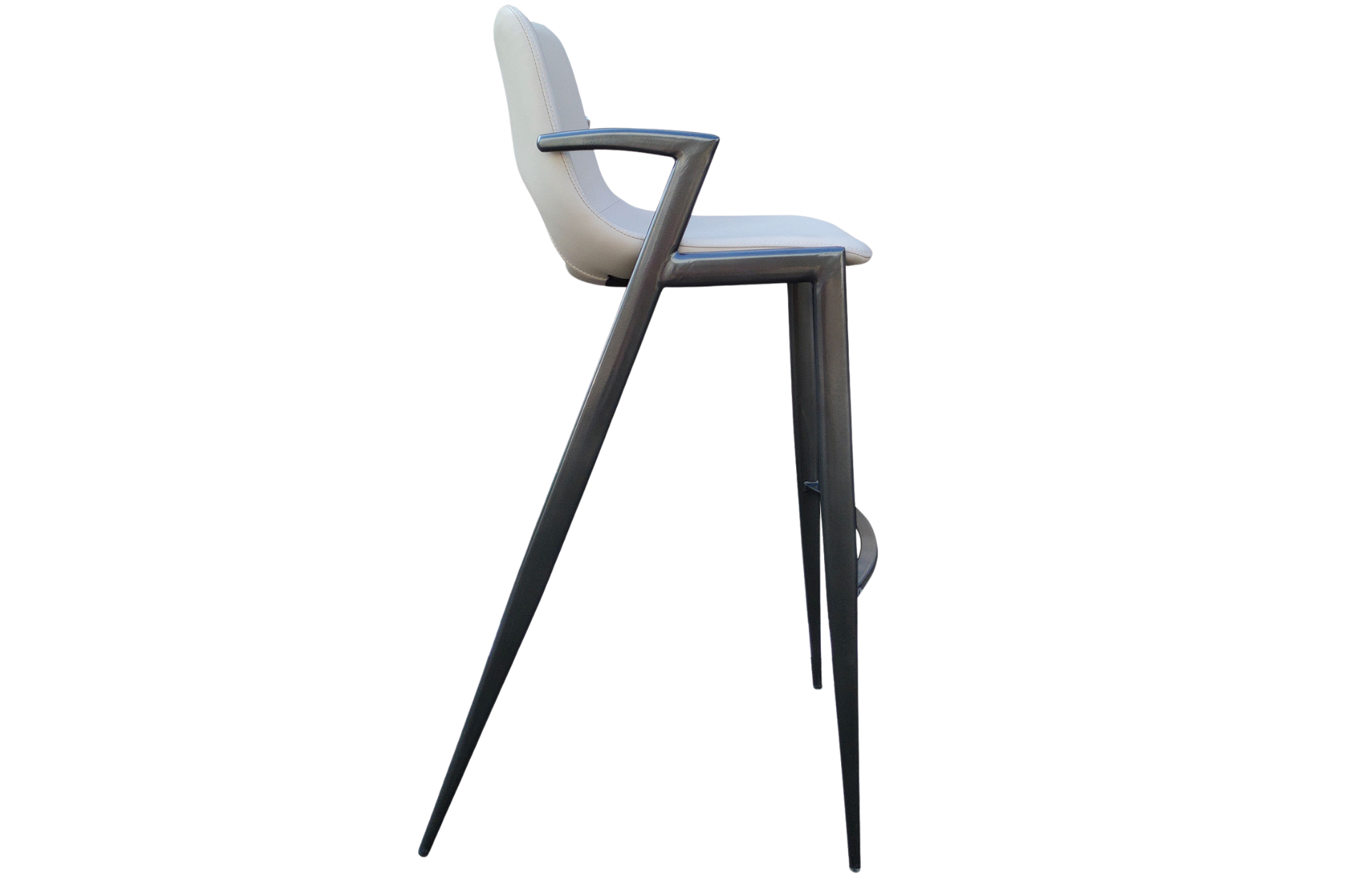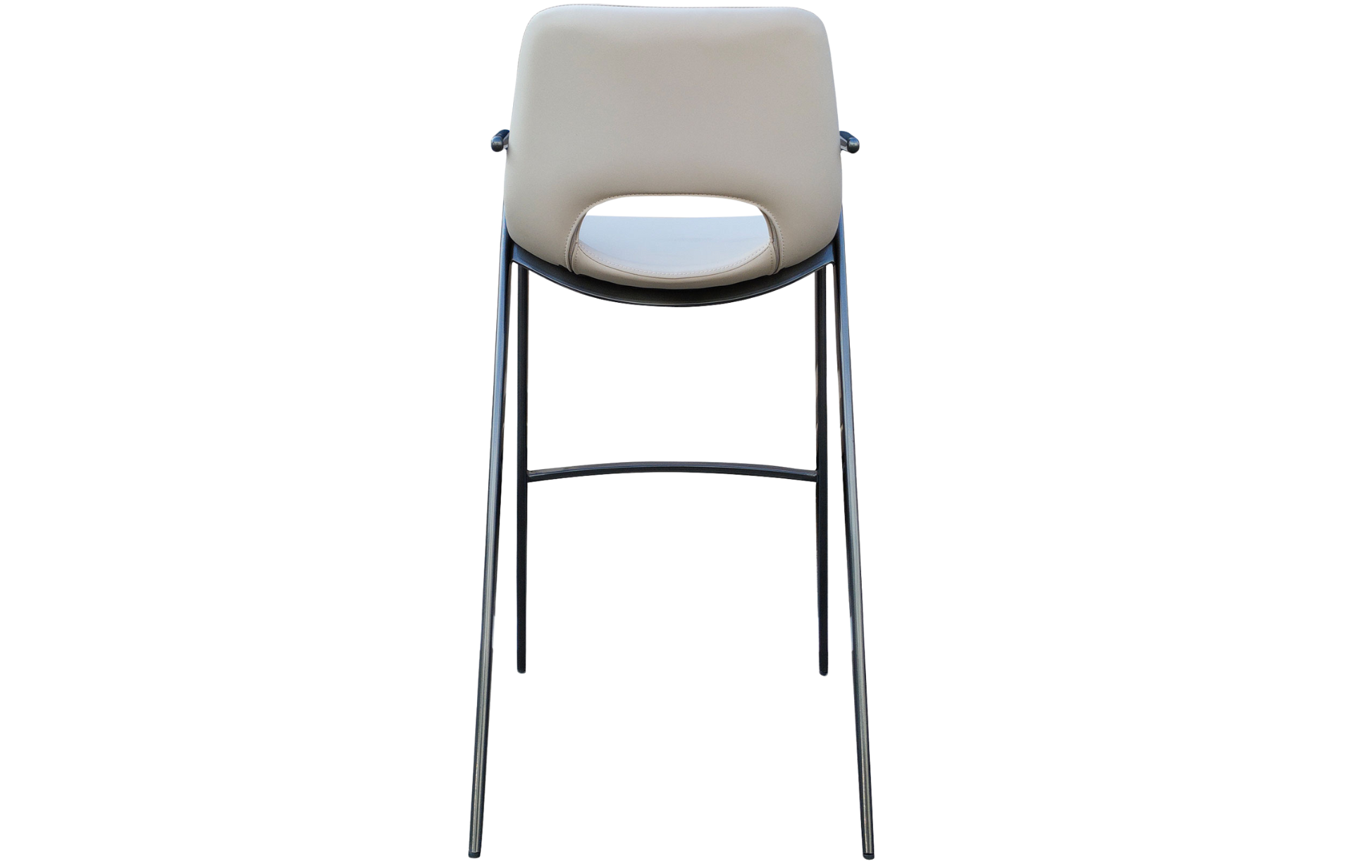 Banqueta Hawk revestida em PU com estrutura de madeira compensada e pernas em metal.