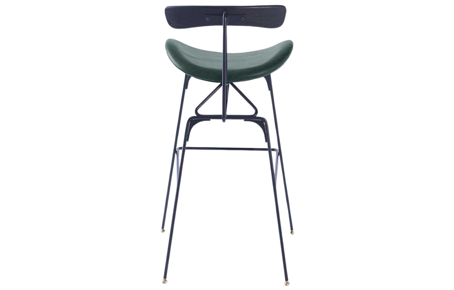 Banqueta Jive estofada em PU com base em aço pintada à pó e pés com regulagem de altura.