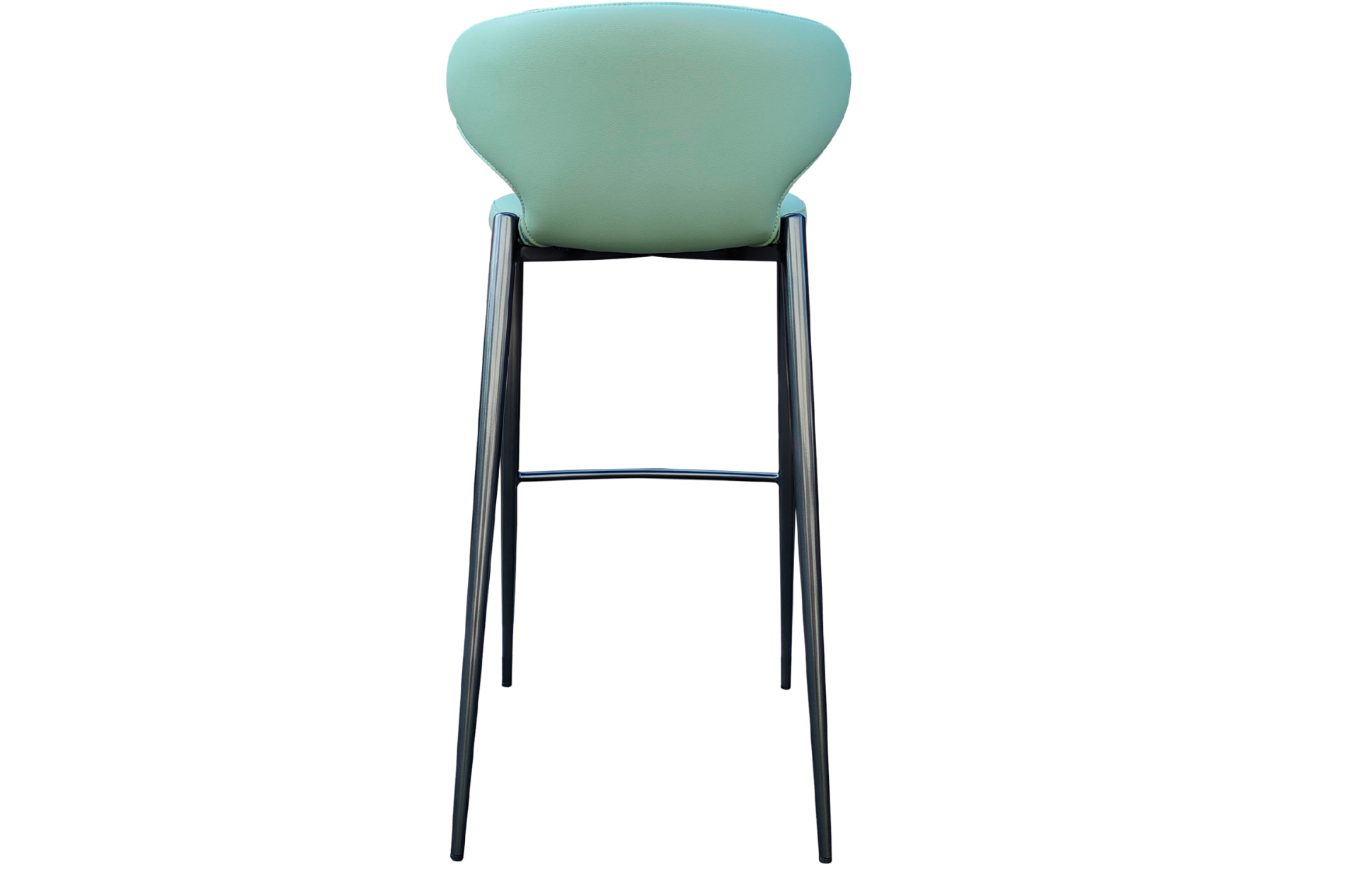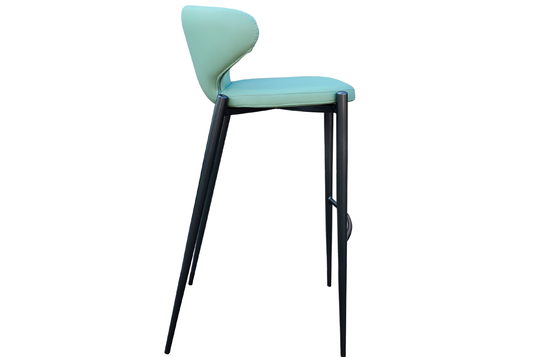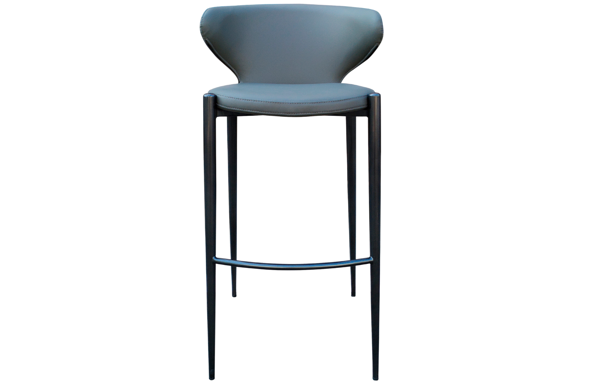 Banqueta Kioto revestida em PU com estrutura de madeira compensada e pernas em metal.