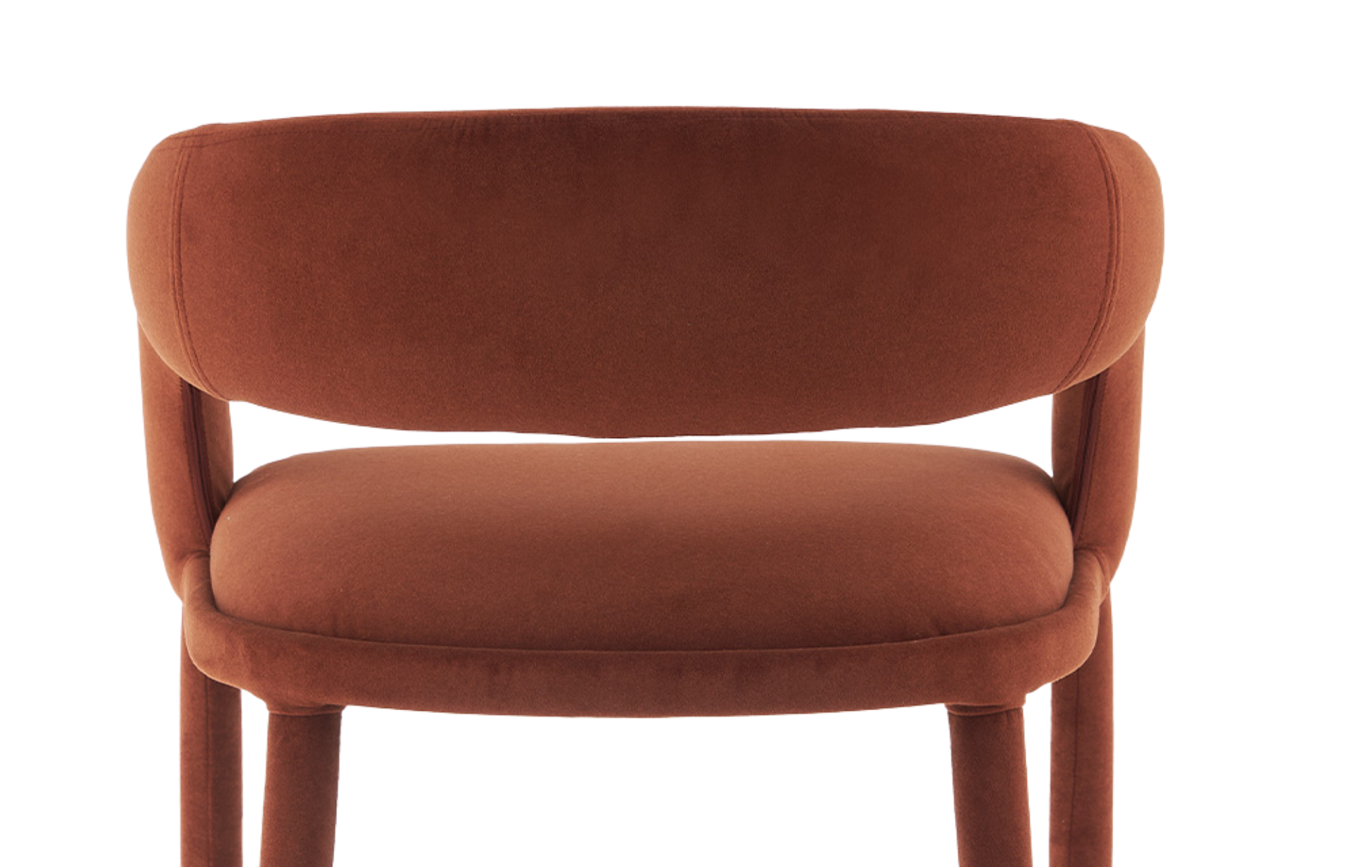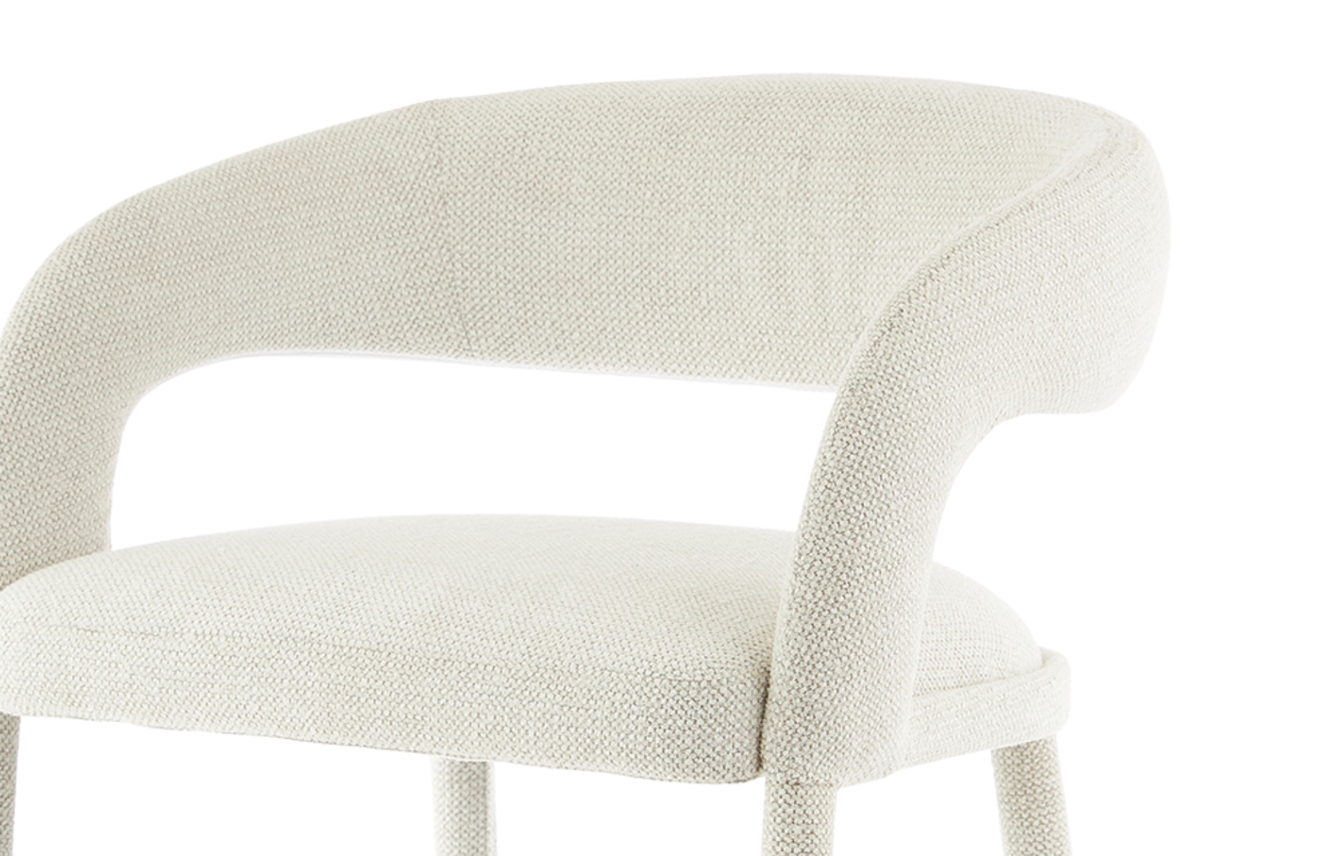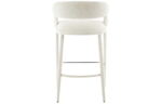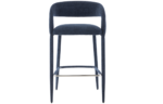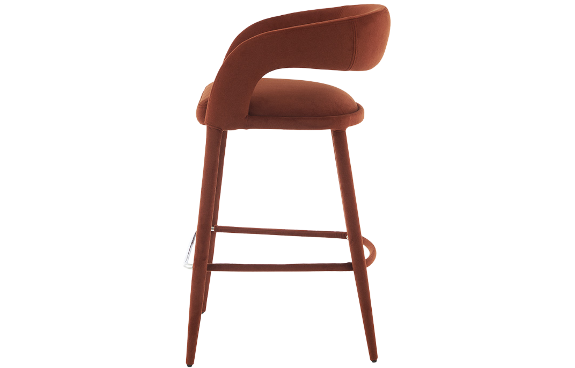 Banqueta Legua estofada em tecido com base revestida em tecido e apoia pés cromado.