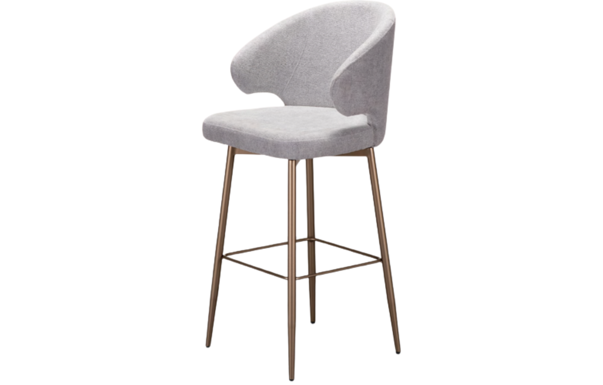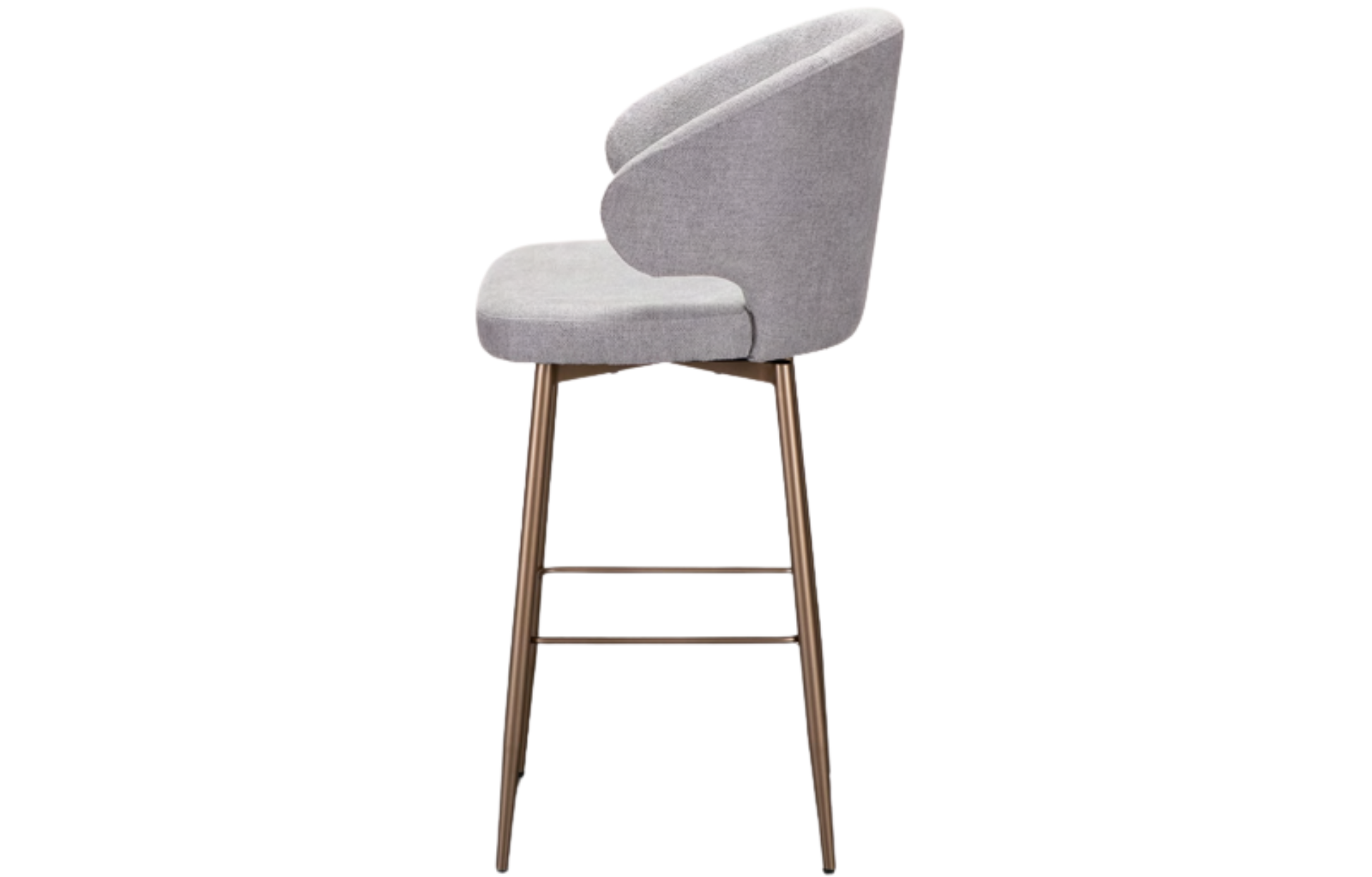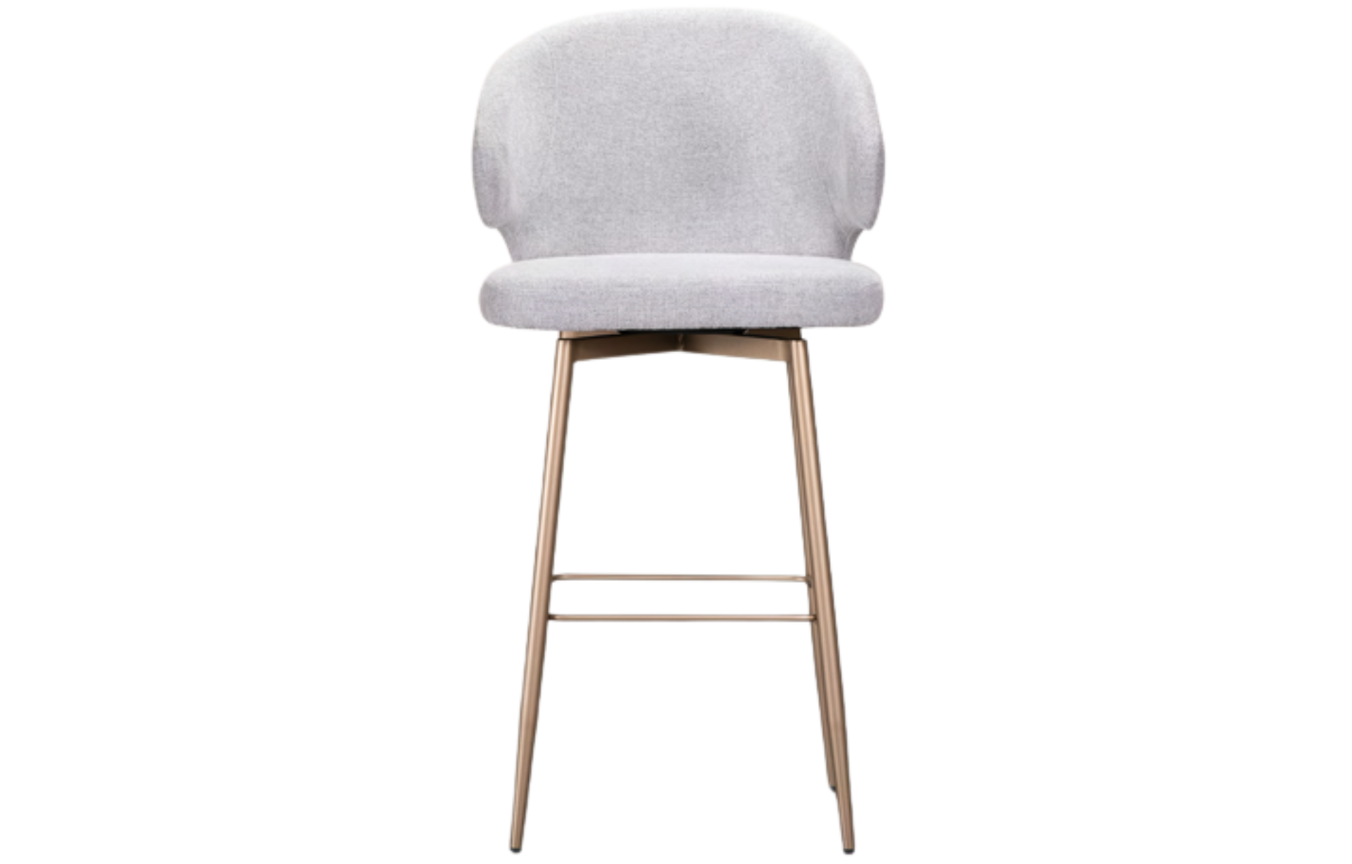 Banqueta Mai com assento e encosto para máximo conforto. Estrutura em aço carbono pintado e assento giratório, unindo praticidade e estilo.