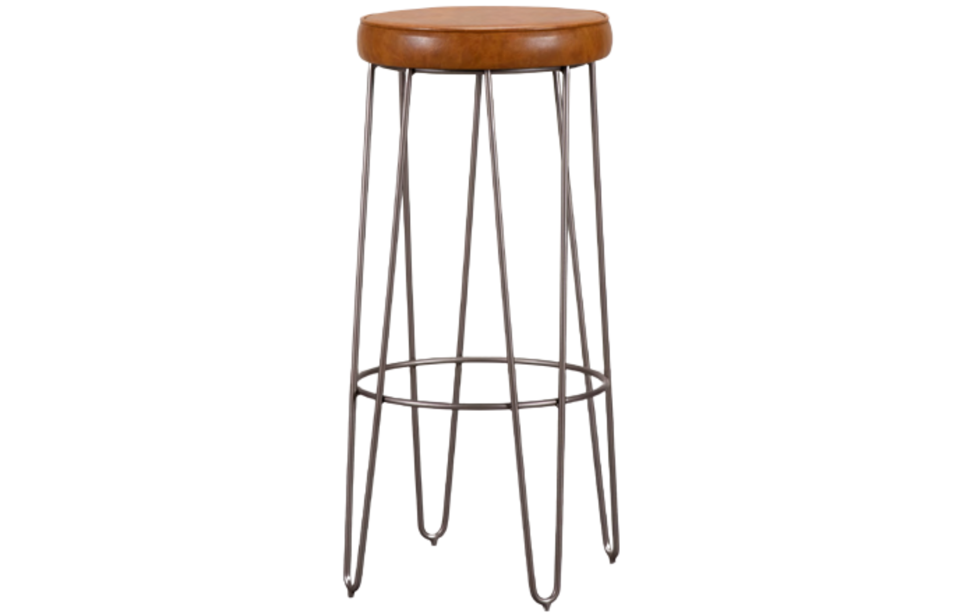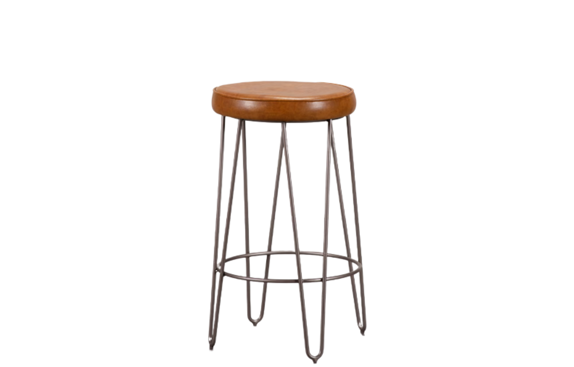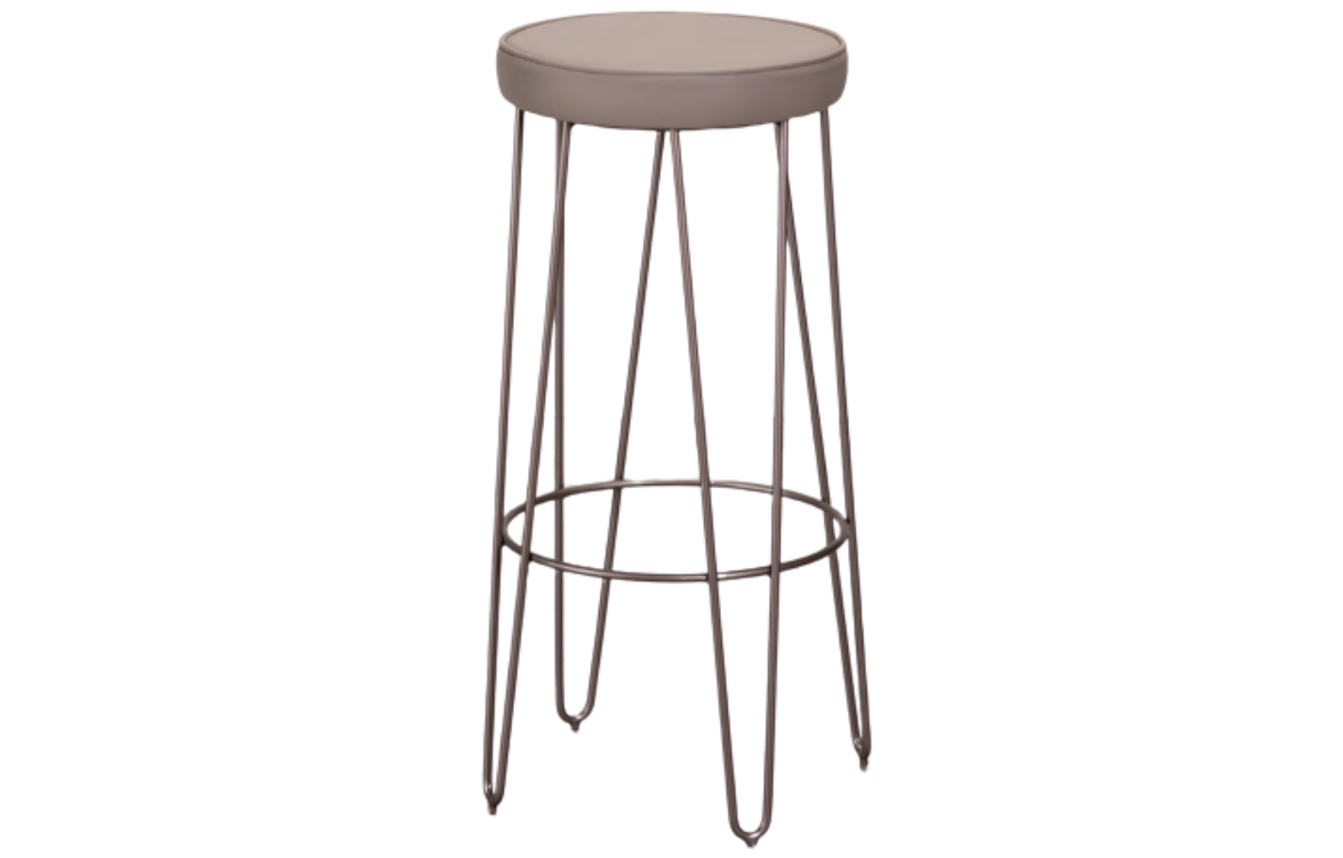 Banqueta Rolls com assento estofado, unindo conforto e design compacto. Estrutura em aço carbono pintado com diâmetro do assento de 35cm