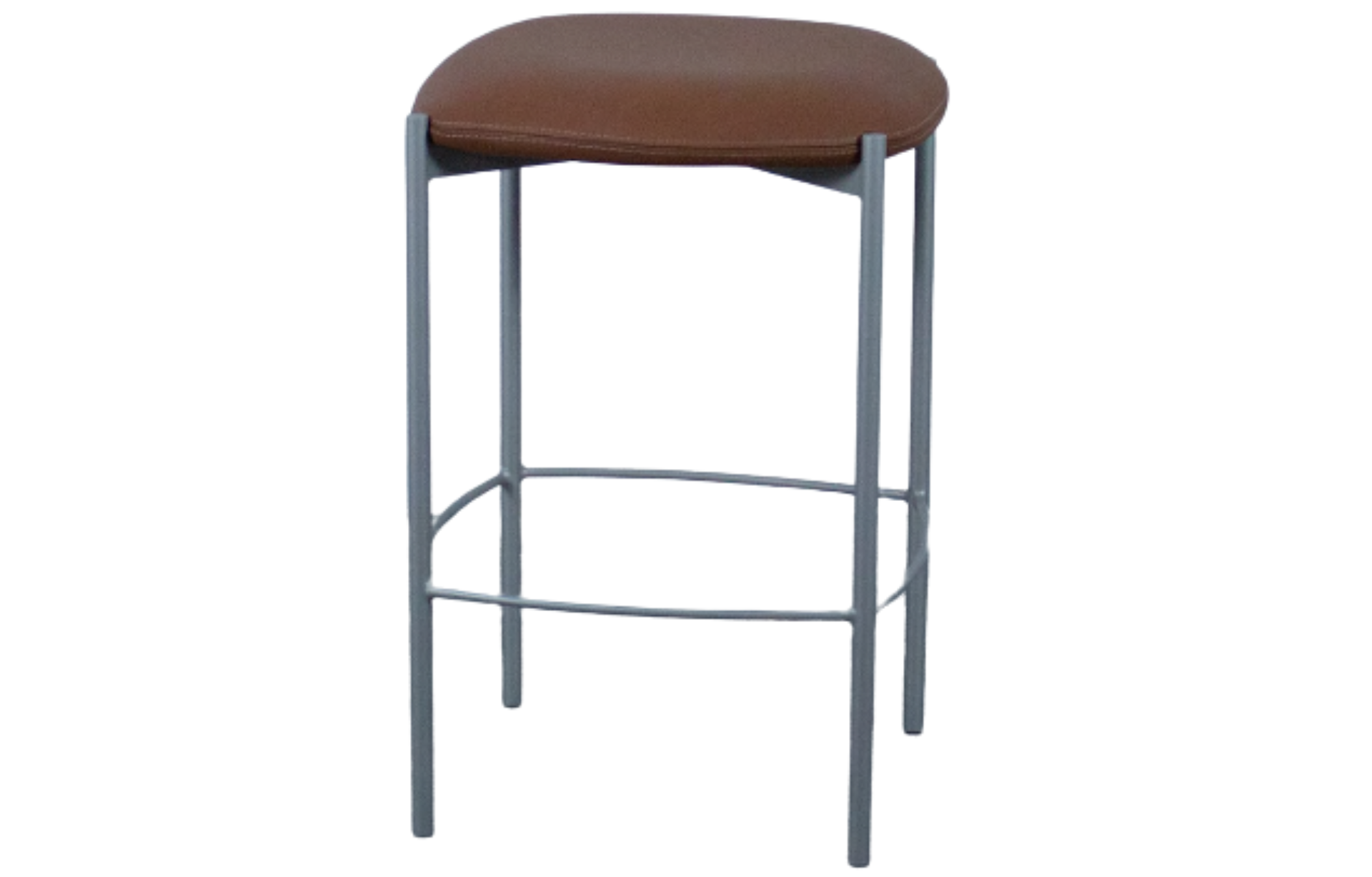 Banqueta Safra disponível com ou sem encosto, assento estofado e estrutura em aço carbono pintado.