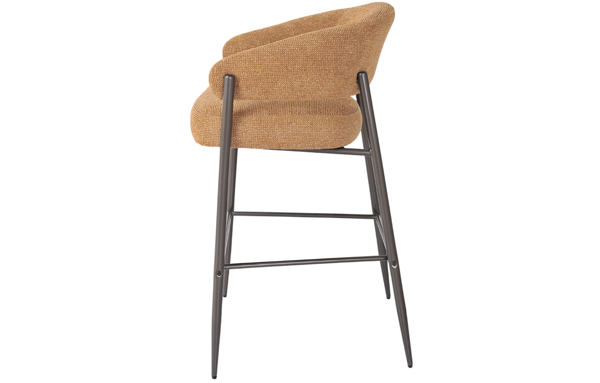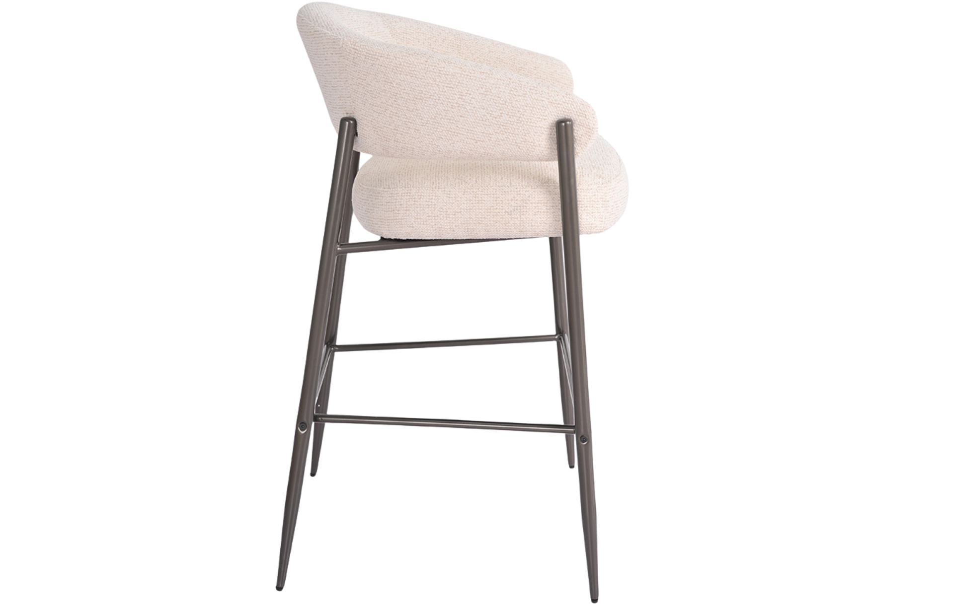 Banqueta Veneco estofada em tecido e base em aço pintada á pó.