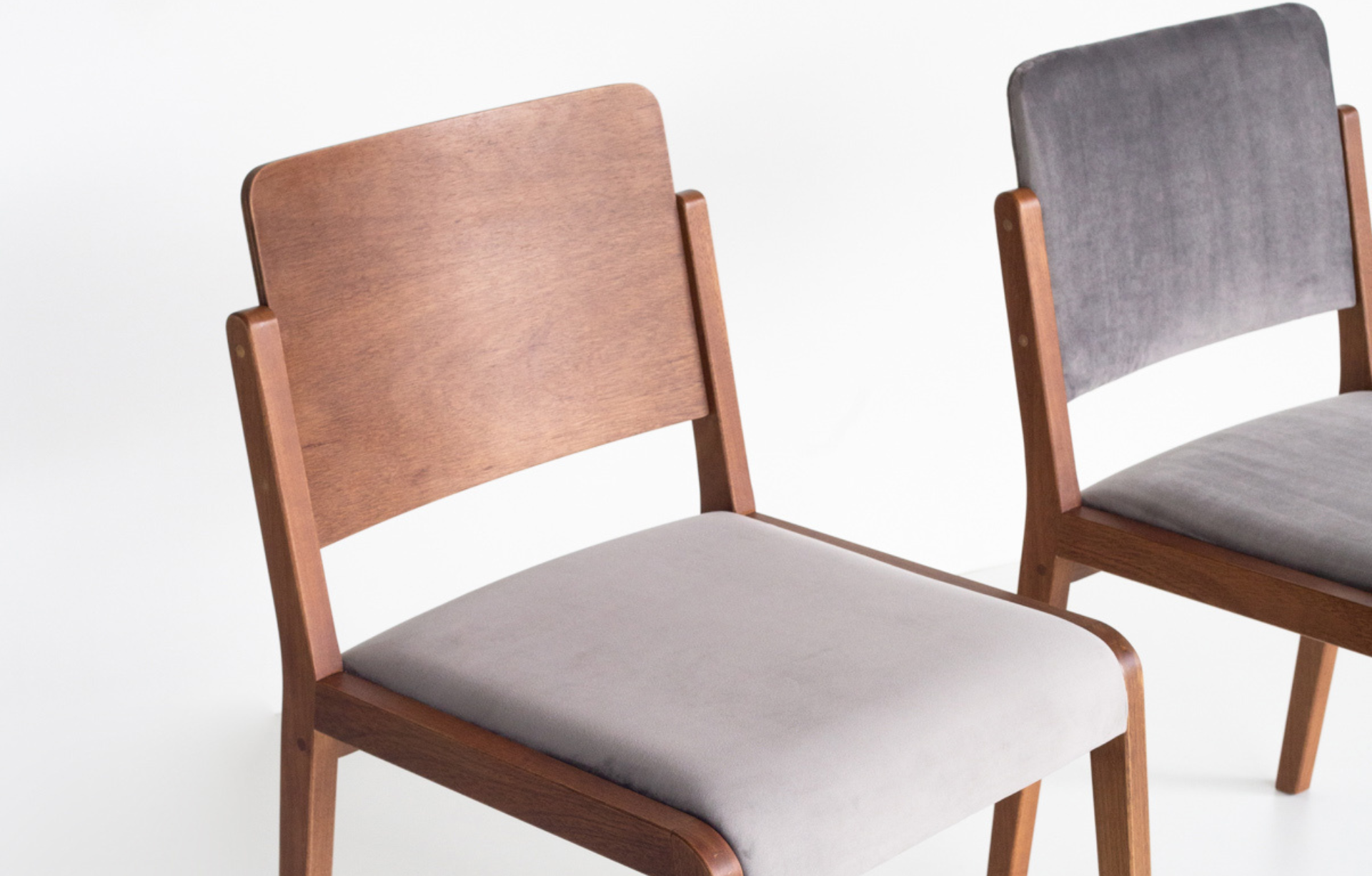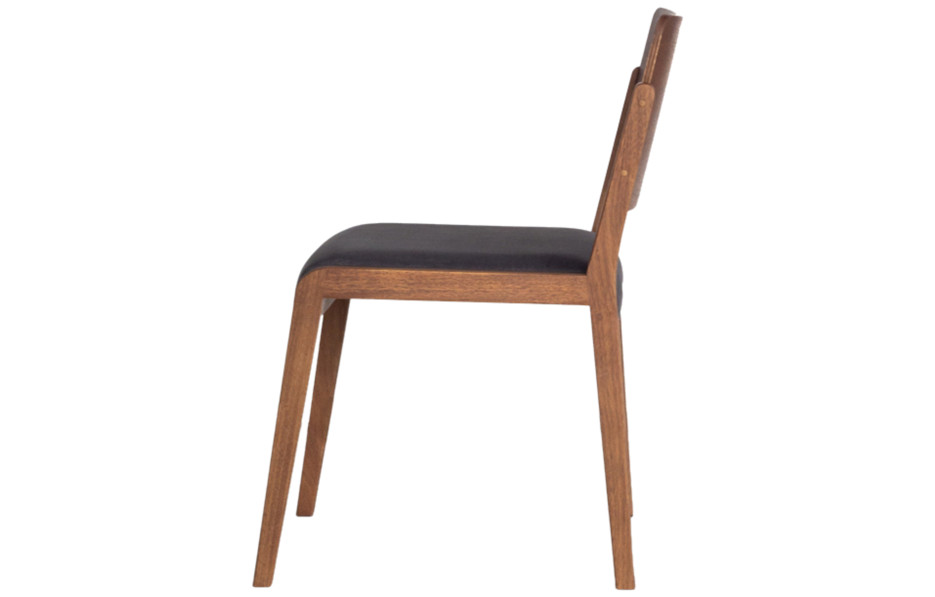 Cadeira Arcos com estrutura em madeira maciça. O encosto pode ser em madeira ou estofado, enquanto o assento é estofado, proporcionando conforto. O design moderno e as linhas limpas da peça se integram facilmente a diversos estilos de decoração.