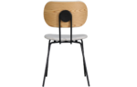 Cadeira Boogie estofada em PU, com encosto em madeira e detalhe em PP. Base pintada em aço pintado a pó.