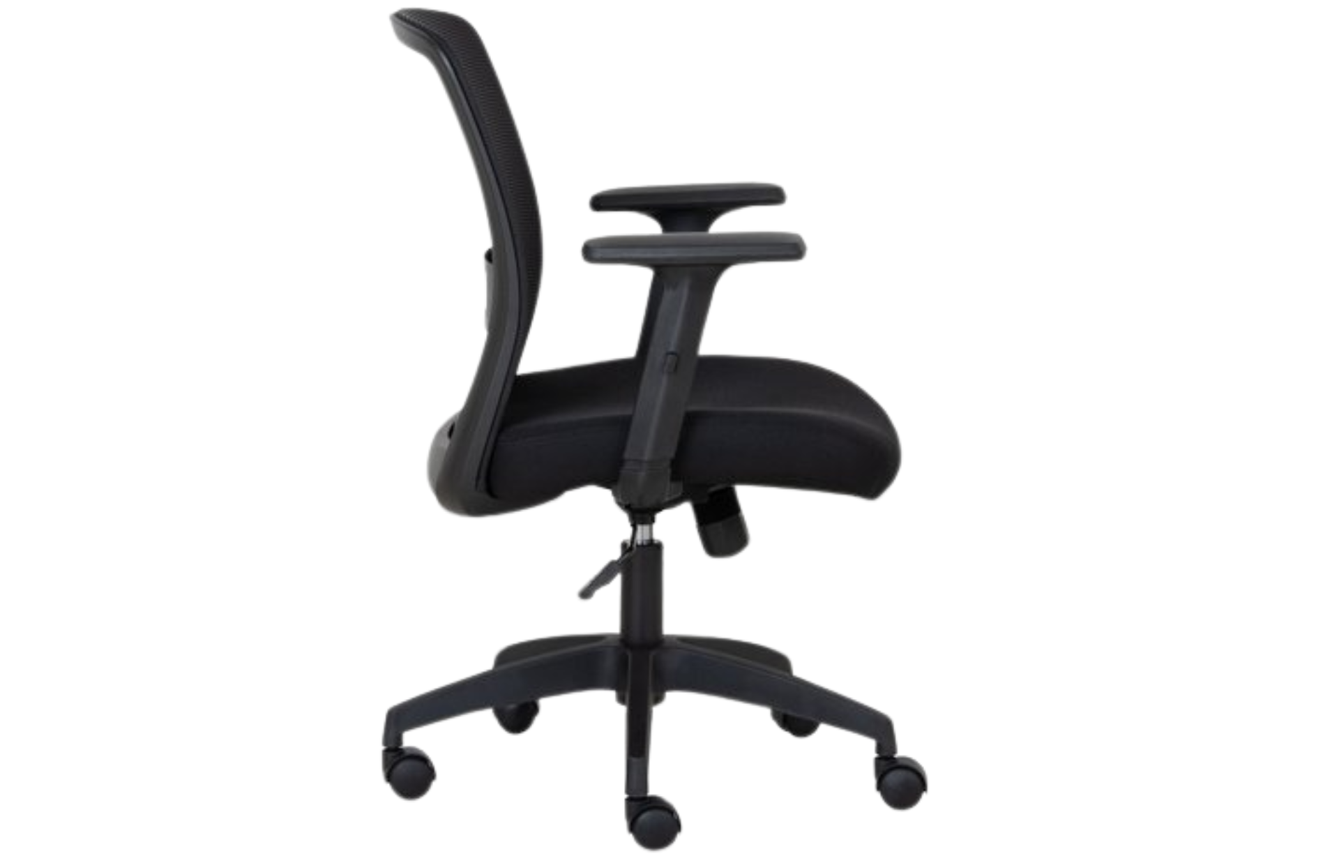 Encosto estruturado em Nylon e revestido em tela, possui apoio lombar que permite ajustes precisos. O Assento é produzido a partir de espumas de Poliuretano expandido, revestido em tecidos de polyster e tendo como estrutura, madeira de compensado anatômica, com alojamento de porca garras para fixação de braços e mecanismos. E configurada a partir de braços de regulagem, produzidos em nylon, com apoias e botão de acionamento para regulagem de altura. Mecanismo com sistema relax, com movimento de pendulo, ajuste de tenção por manipulo e trava mecânica para deixa a cadeira em posição trabalho. Sua base giratória utiliza Pistão a Gás, com acionamento de múltiplas posições de altura, além de estrela com desenho em sistema piramidal, produzida em Nylon e rodízios com duplo giro, em nylon.