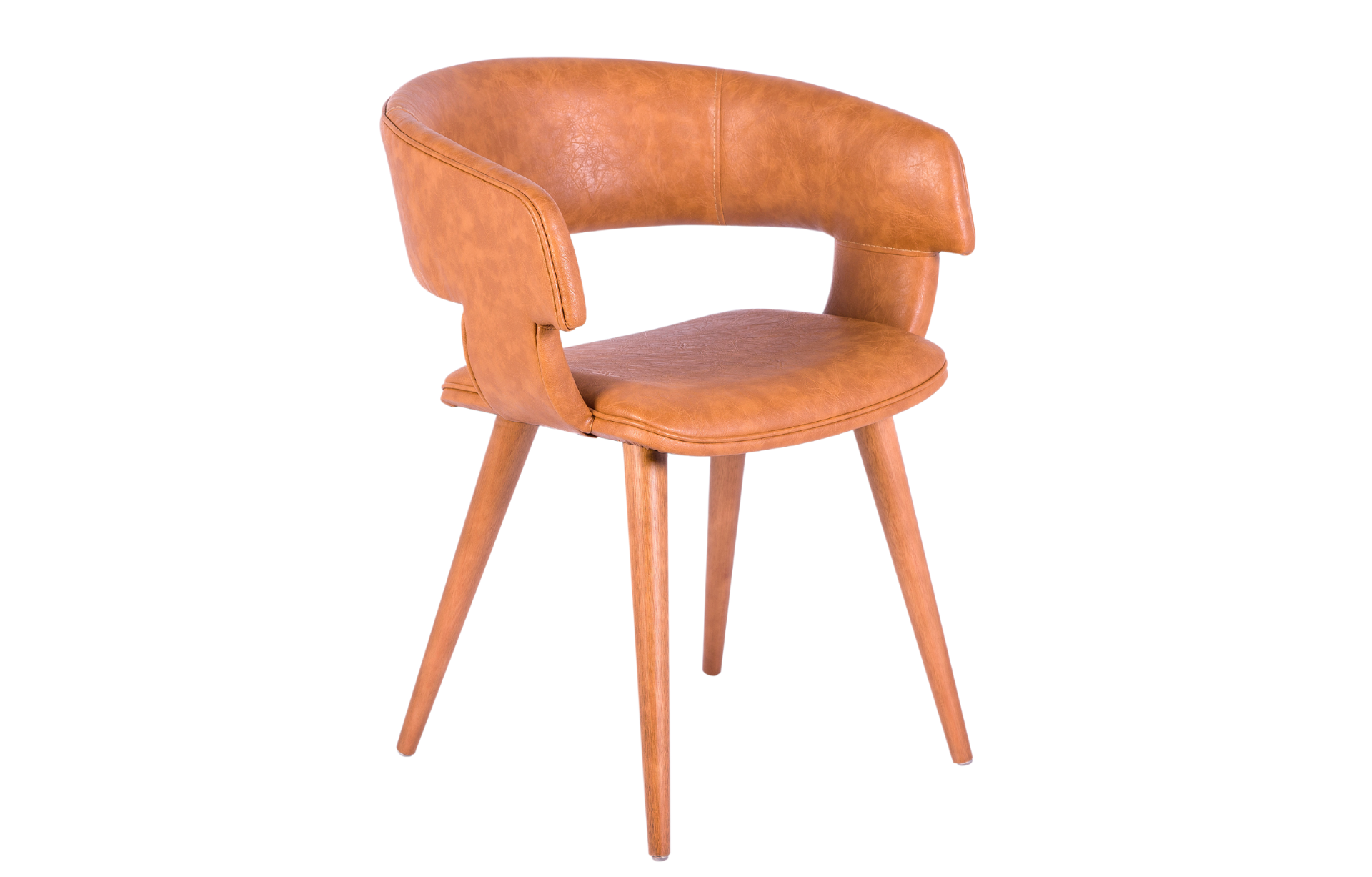 Cadeira Catalina com pés palito tingidos e estofamento para assento, encosto e braços.