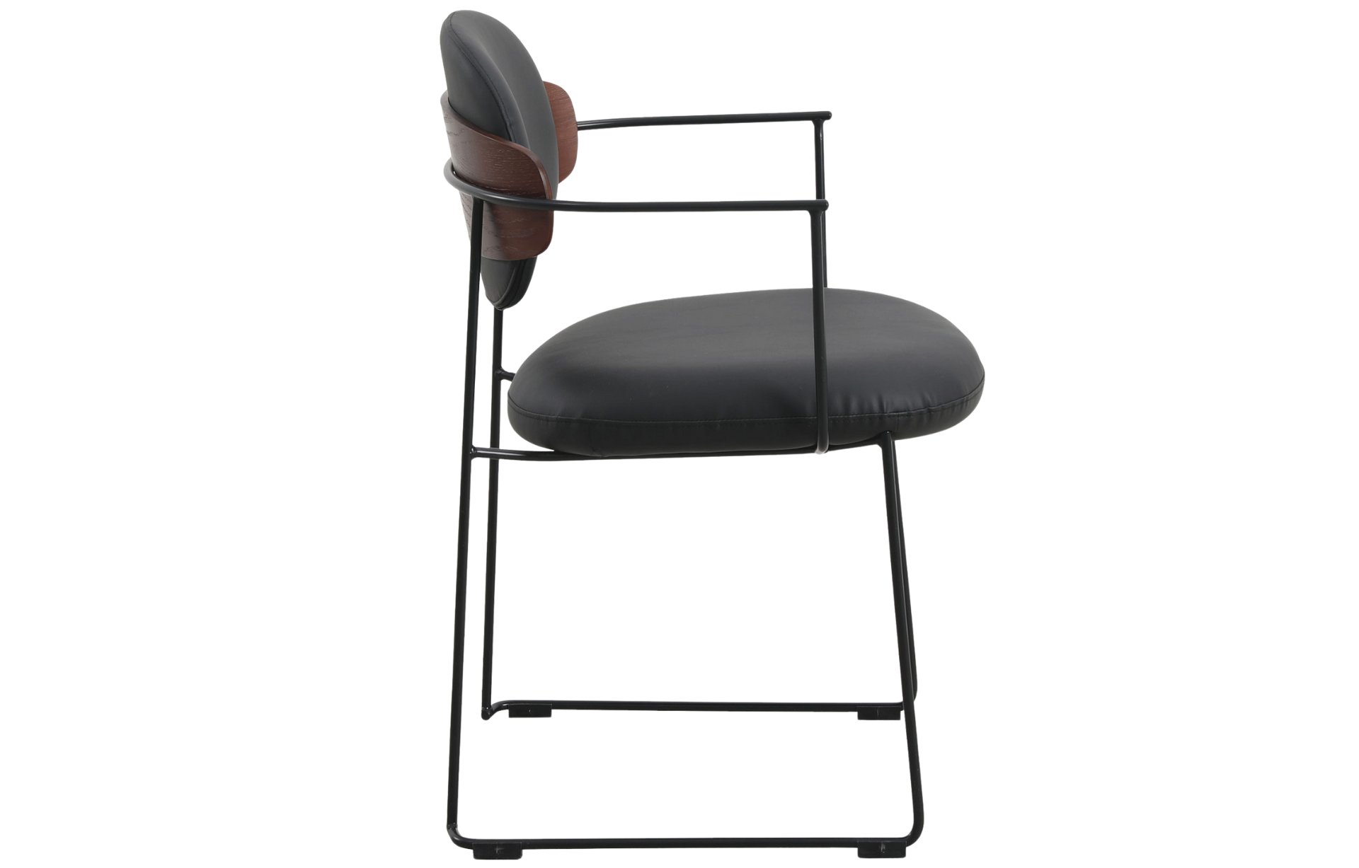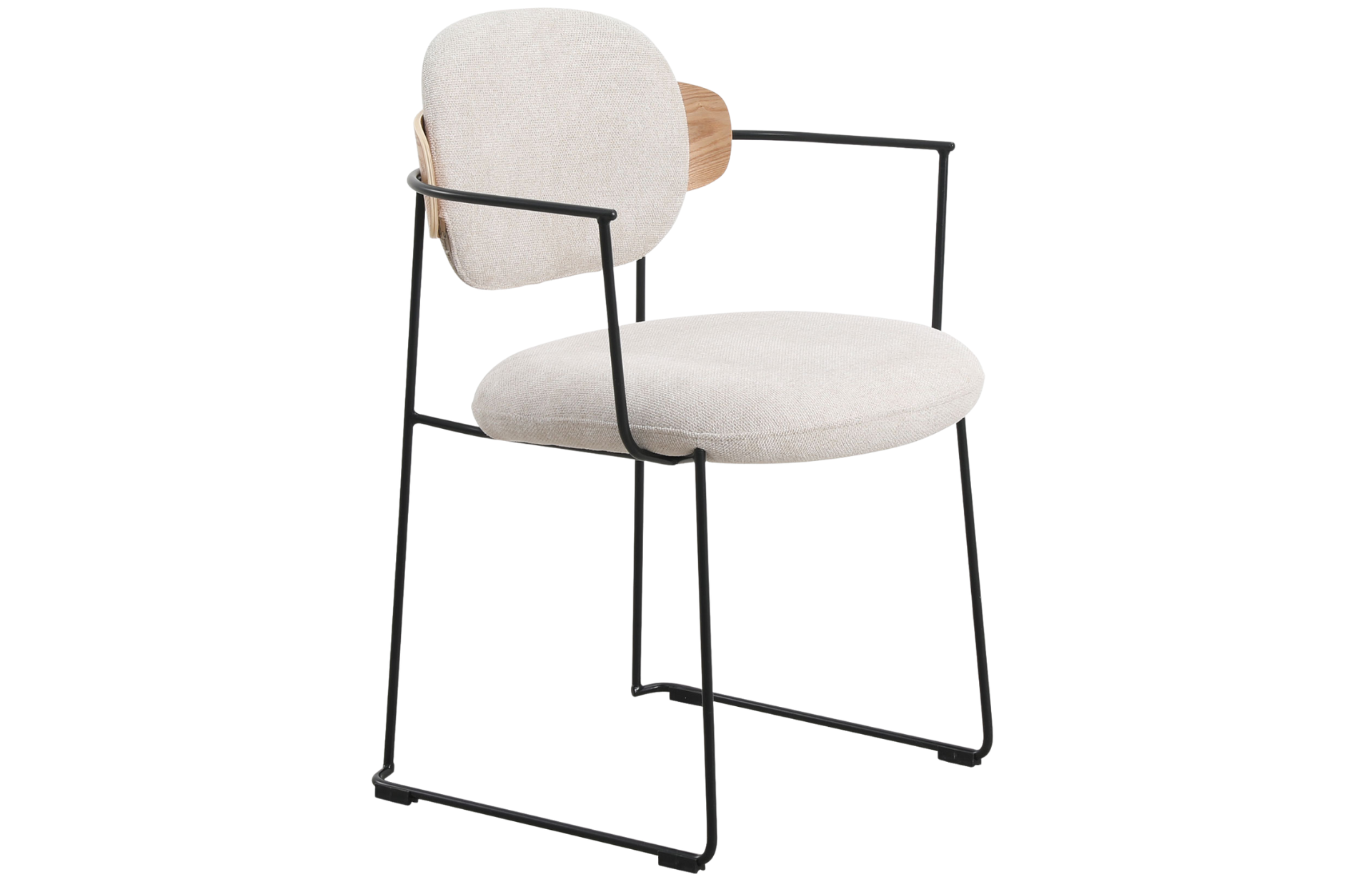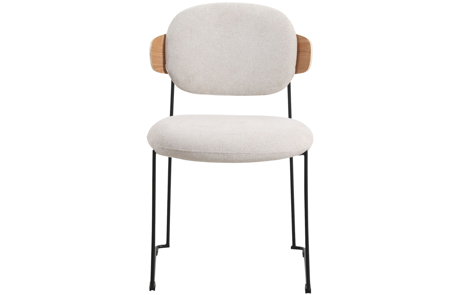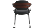 Cadeira Downtown, estofada em poliuretano ou tecido com detalhe de madeira multilaminada no encosto. Base em aço pintado à pó.