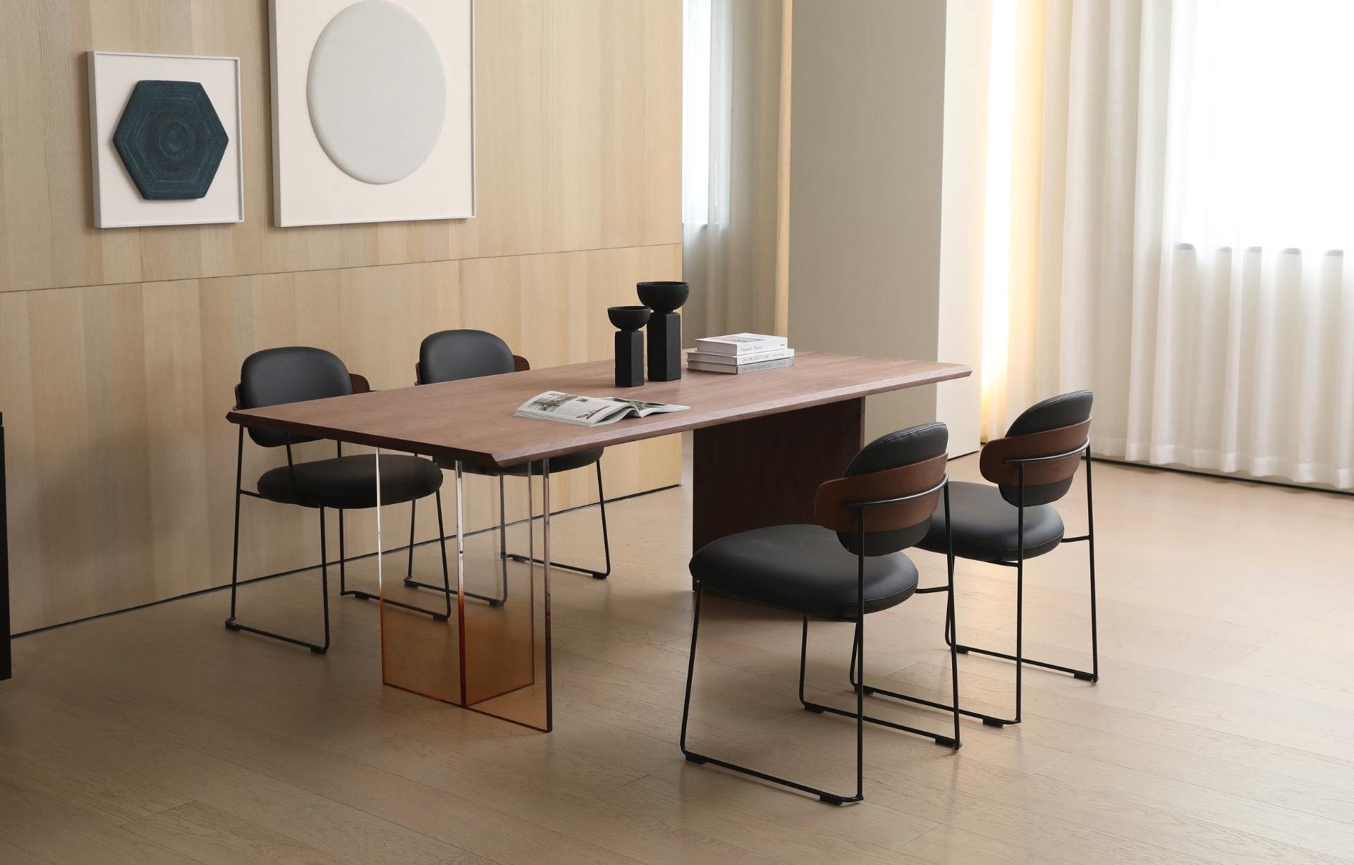 Disponível nos acabamentos: Amêndoa e PU Preto ou Natural e Tecido Off White