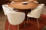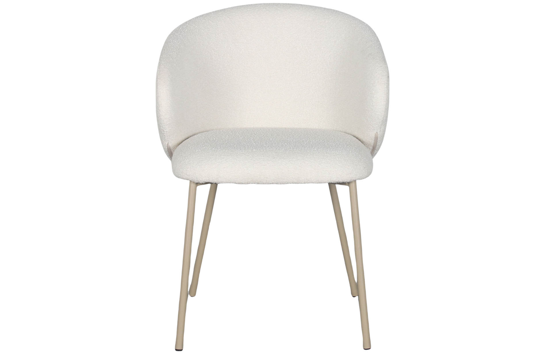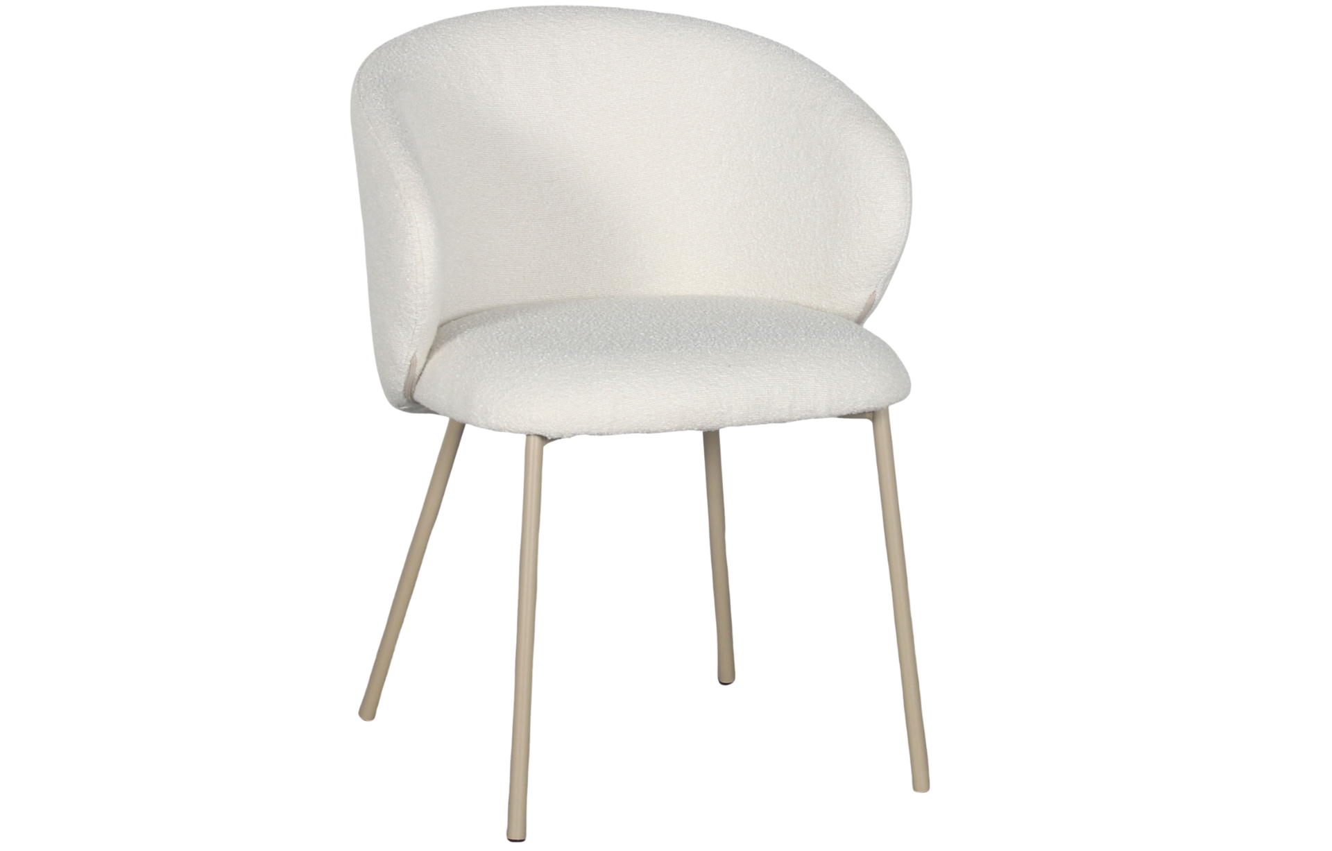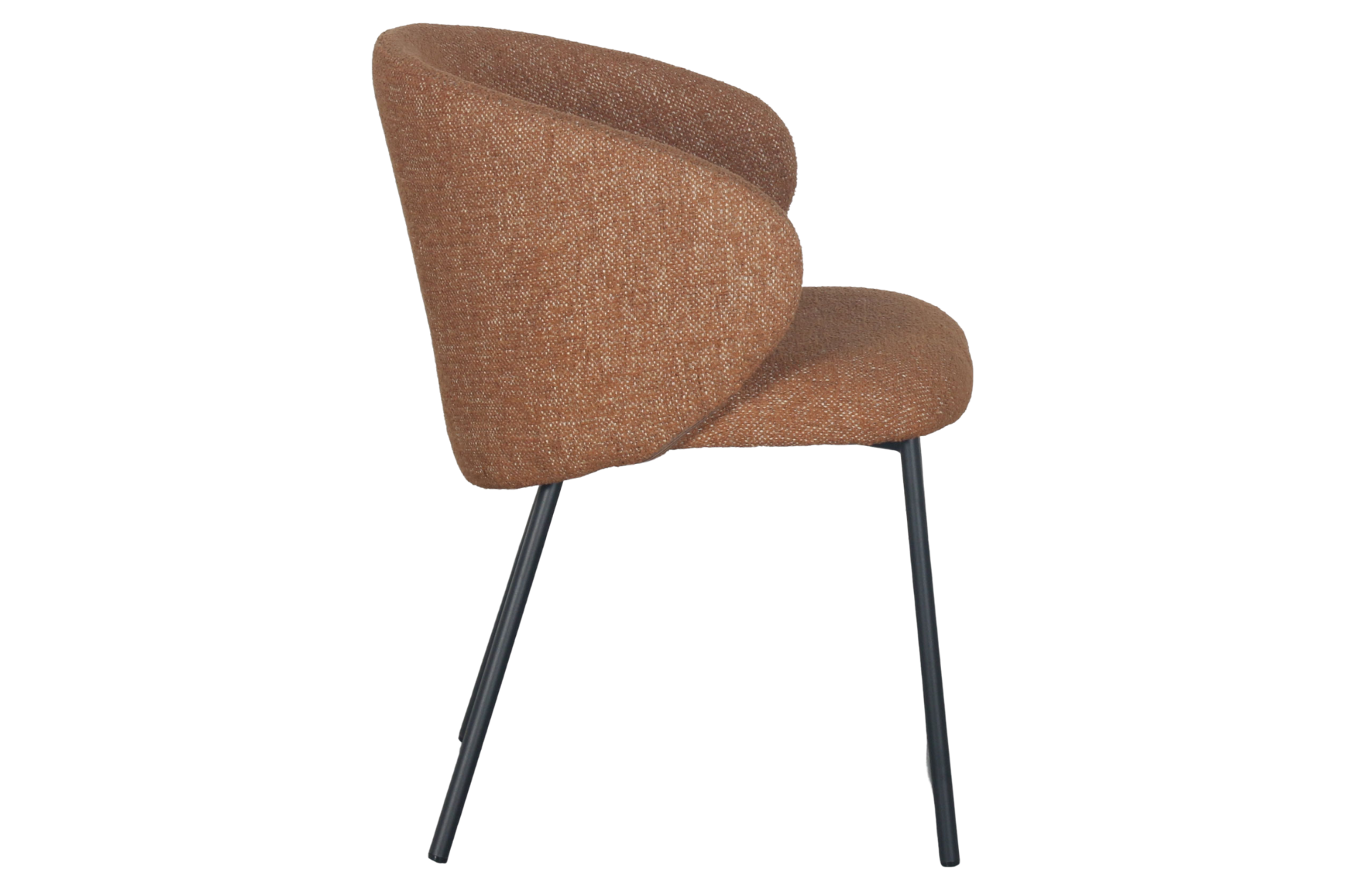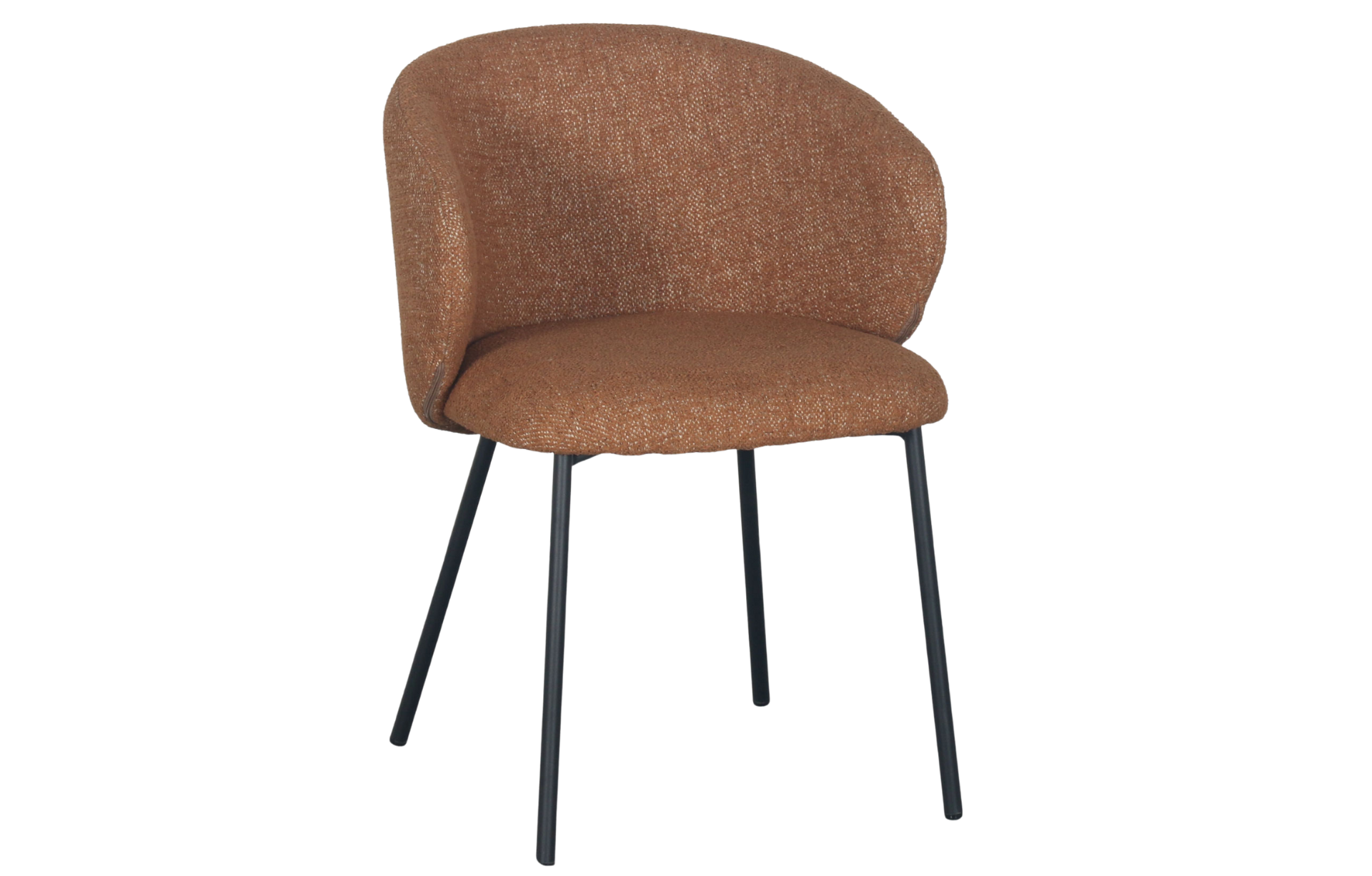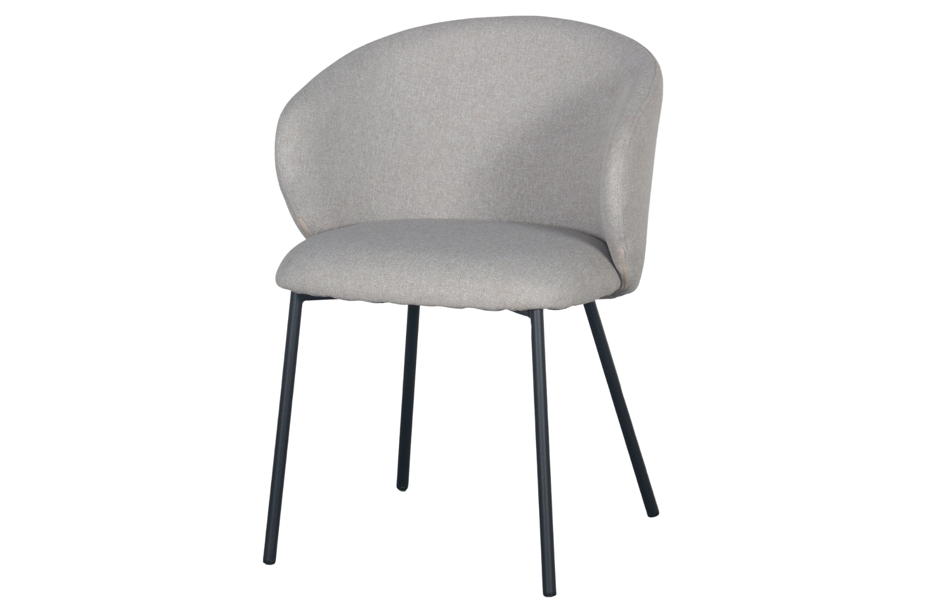 Cadeira Francis revestida em tecido e base em aço pintado à pó.