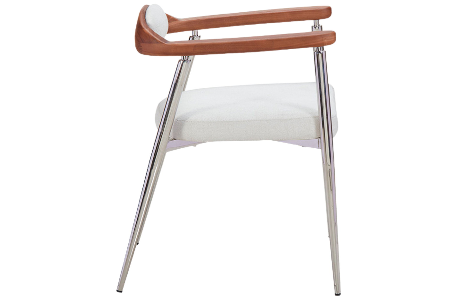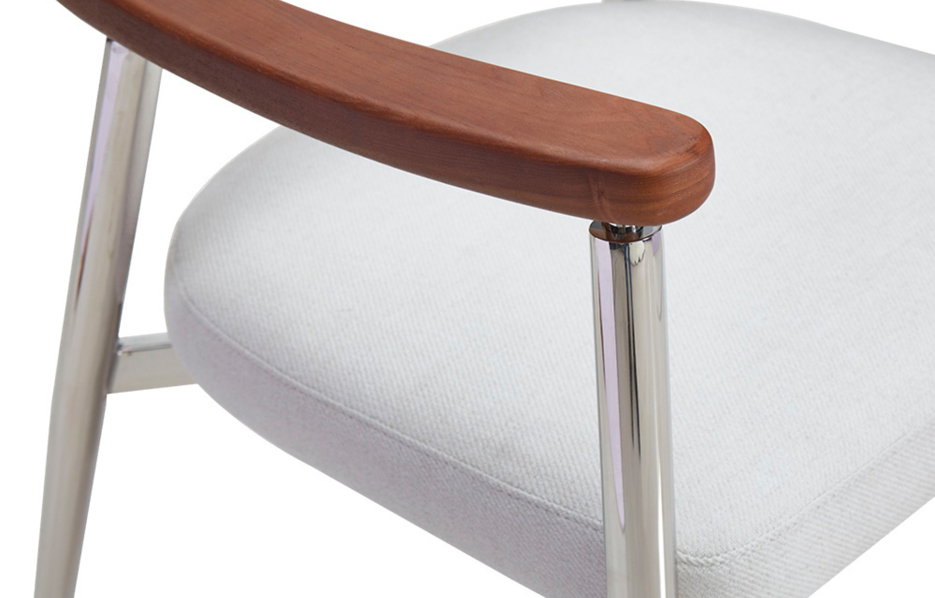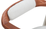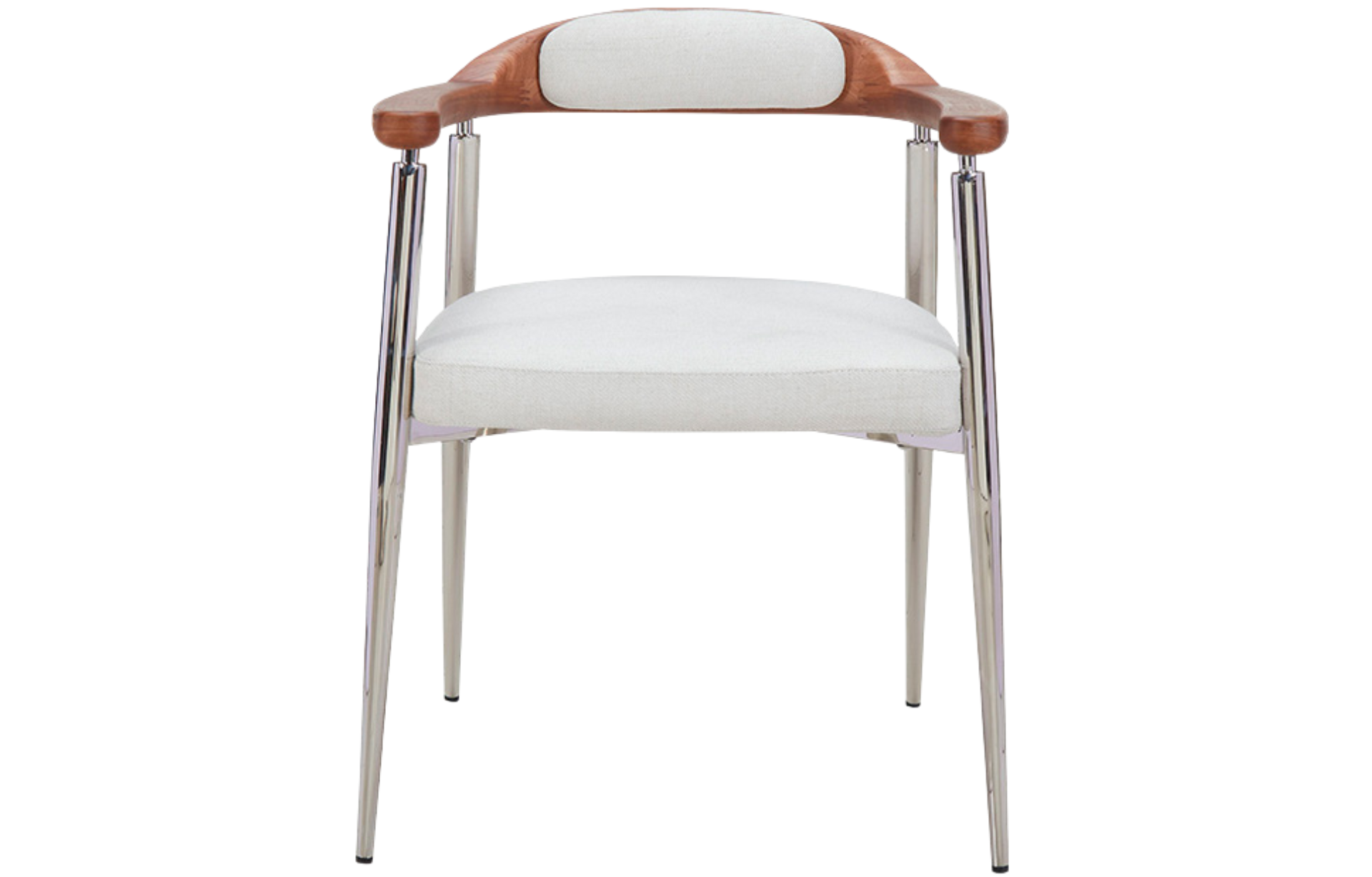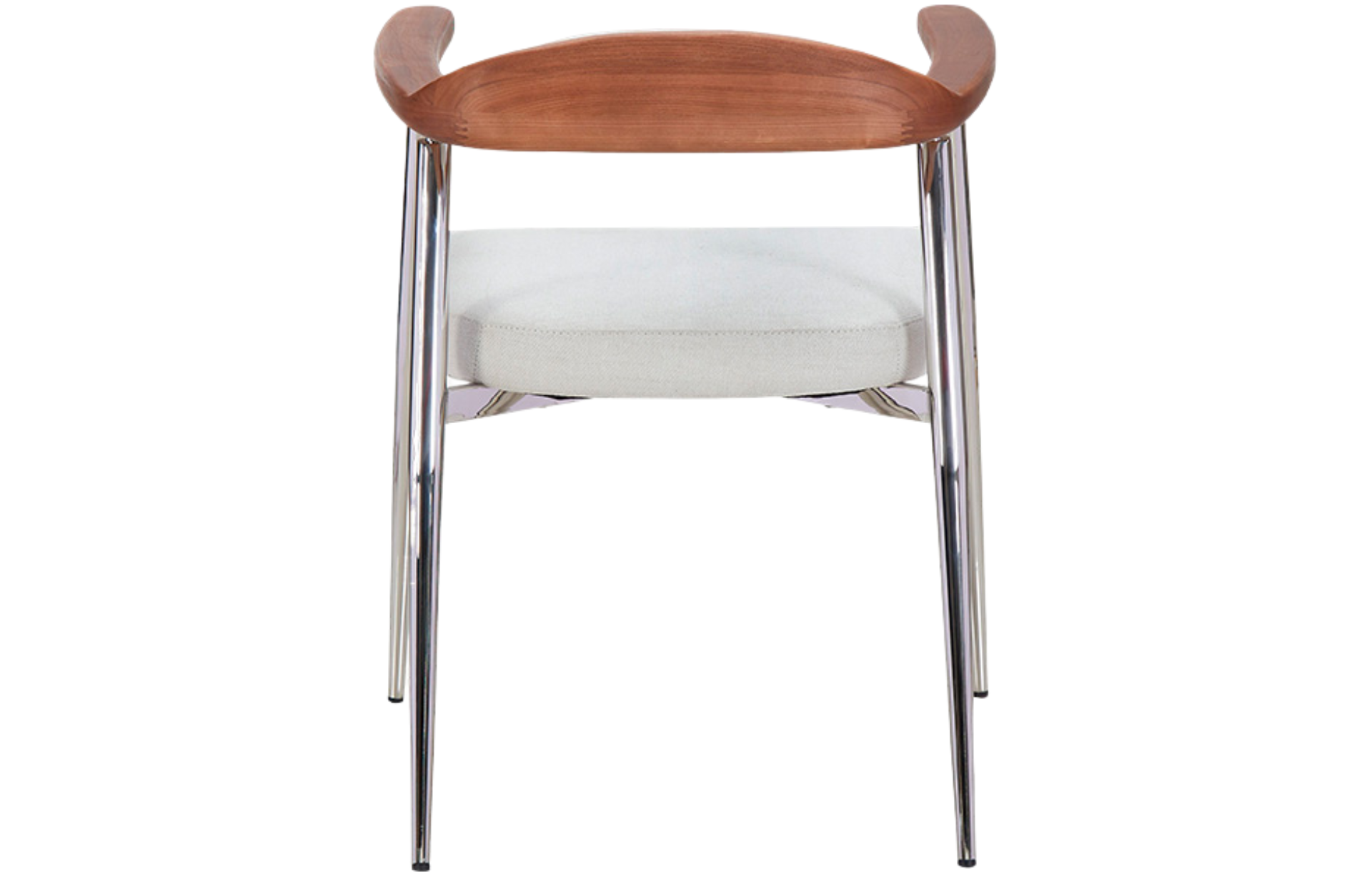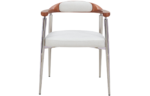 Cadeira Gomez estofa em tecido com espaldar em Madeira de Freixo e Base em Aço Inoxidável.