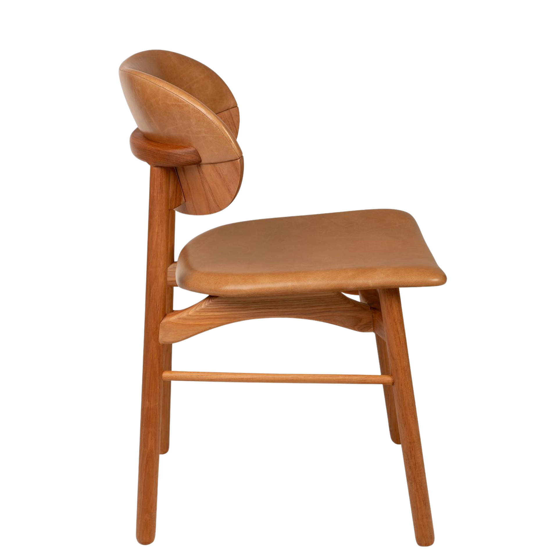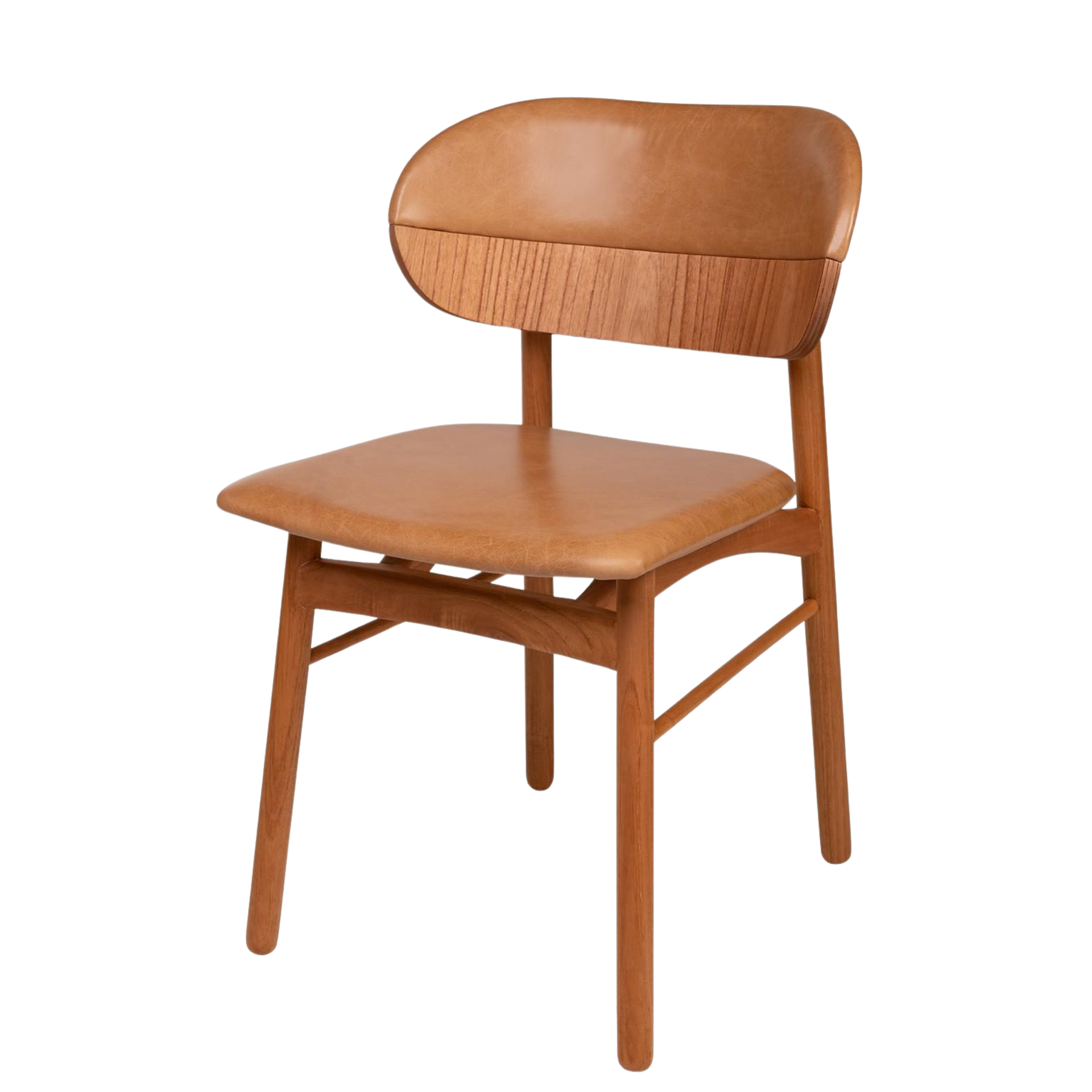 Seu espaldar bipartido remete a um grão de café, revestido em madeira laminada e couro. De estrutura torneada, se destaca pelo seu assento anatômico que provoca a sensação de flutuação.