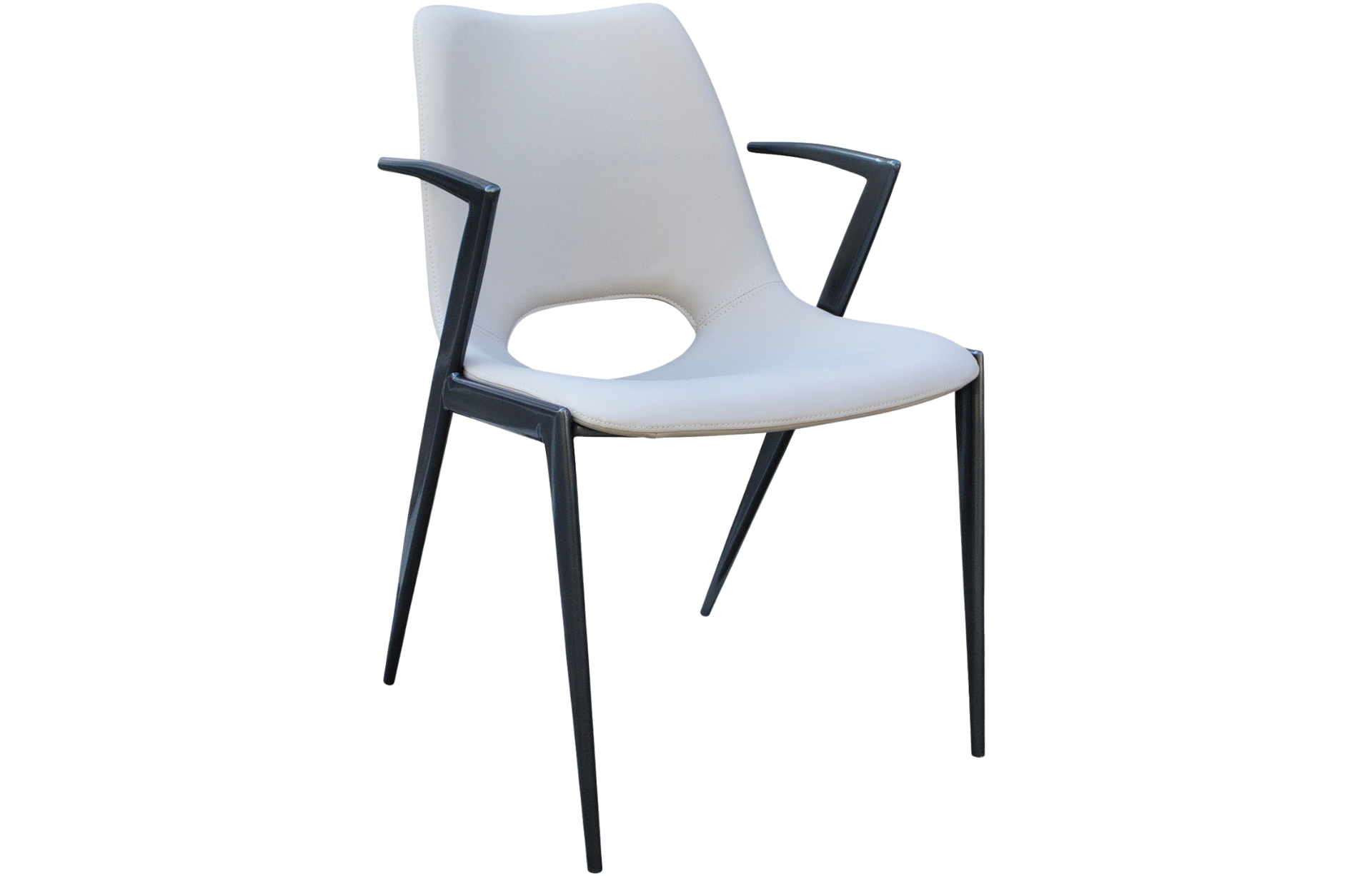 Cadeira Hawk revestida em PU com estrutura de Madeira Compensada e pernas em Metal.