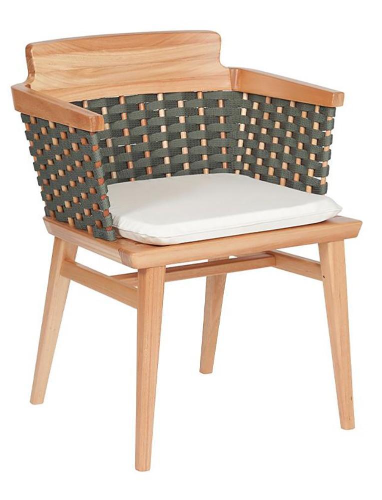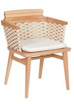A cadeira projetada pela Asa Design é feita em madeira eucalipto com acabamento em verniz. Você pode optar pelo encosto com ou sem trama de cordas náuticas, além de decidir se vem com ou sem braço na cadeira.