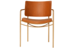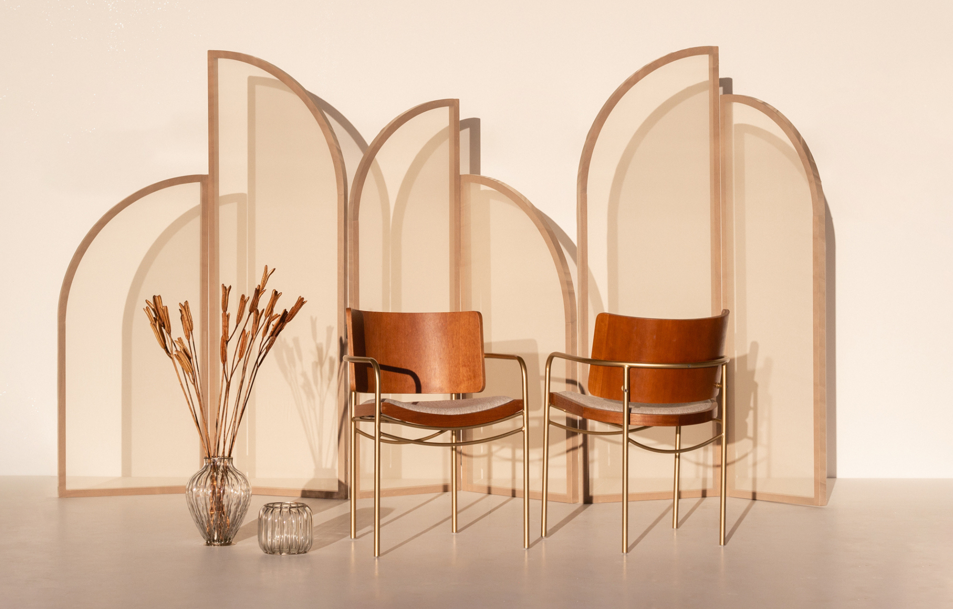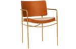 A Cadeira Tahoe se destaca por sua estrutura em metal de design industrial, que contrasta elegantemente com o encosto e assento curvos em madeira e estofamento. O design leve e minimalista é complementado pelos braços contínuos, proporcionando conforto e um visual sofisticado.