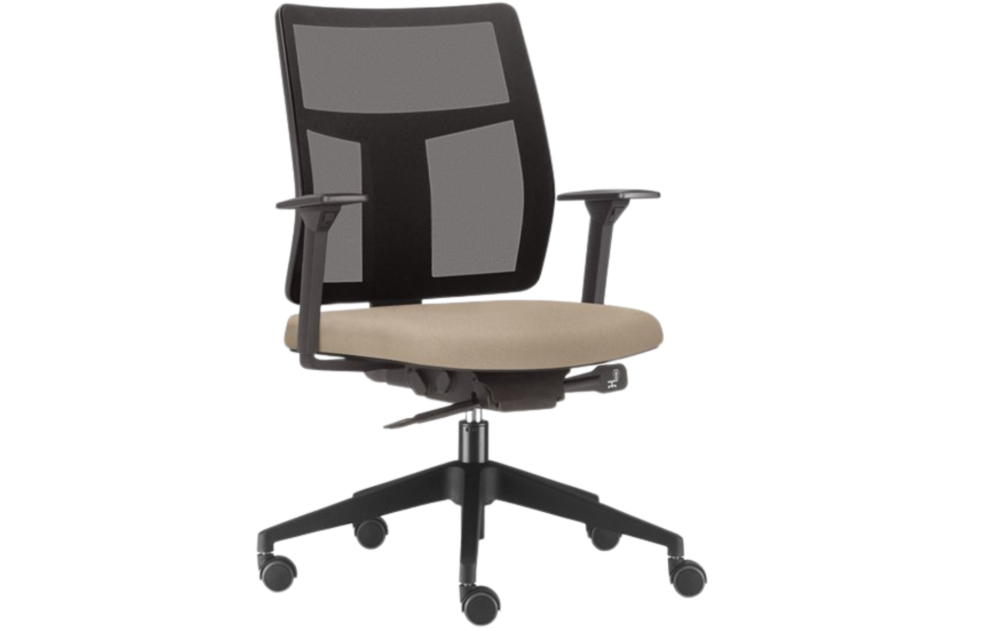 Mecanismo ergonômico de contato permanente, permite a inclinação do encosto para melhor adequar ao biotípo do usuário com travamento em qualquer ponto, permite ainda a regulagem de altura deste encosto.