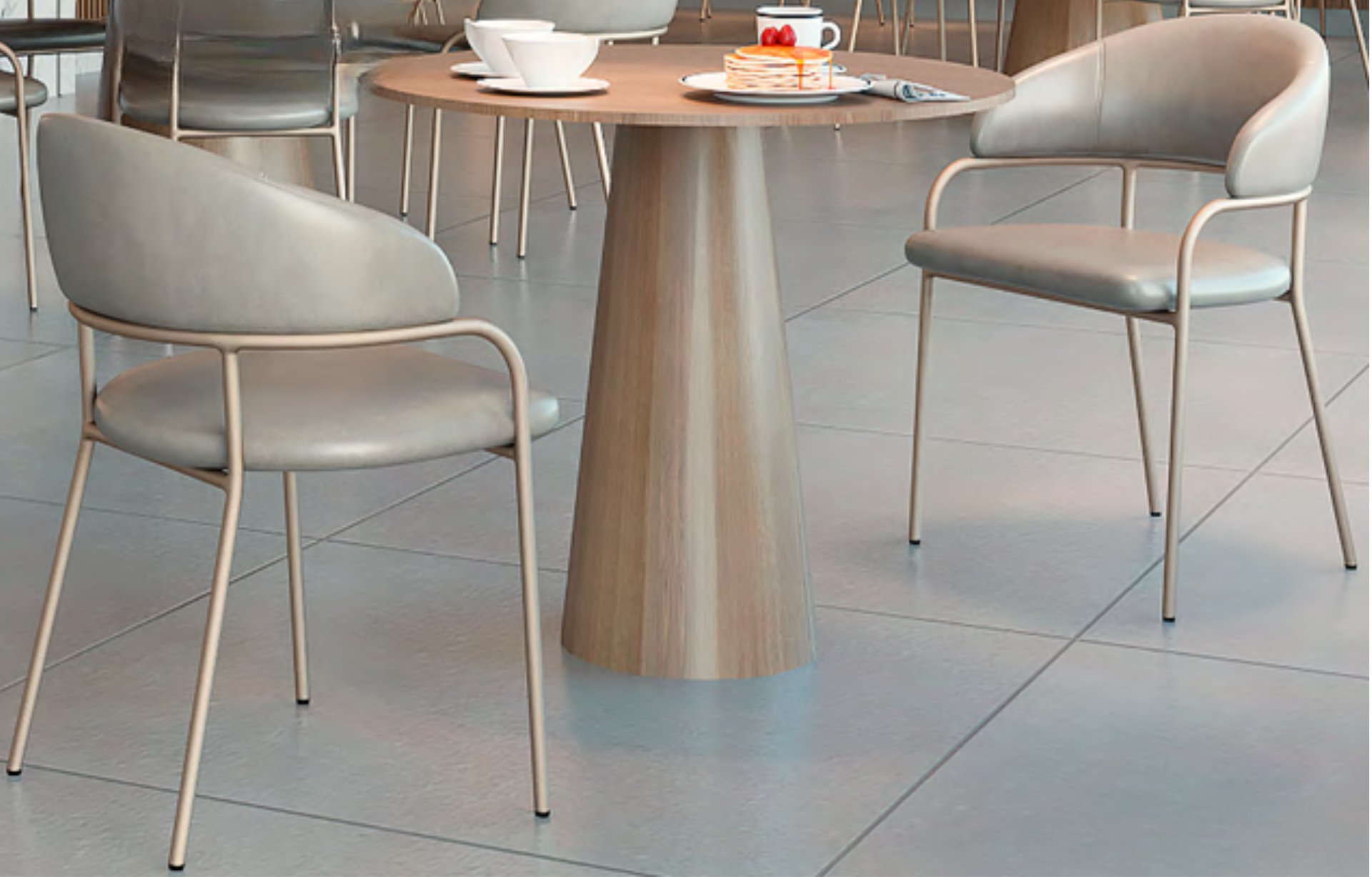 Cadeira Tourville estofada com design confortável e elegante. Estrutura em aço carbono pintado.
