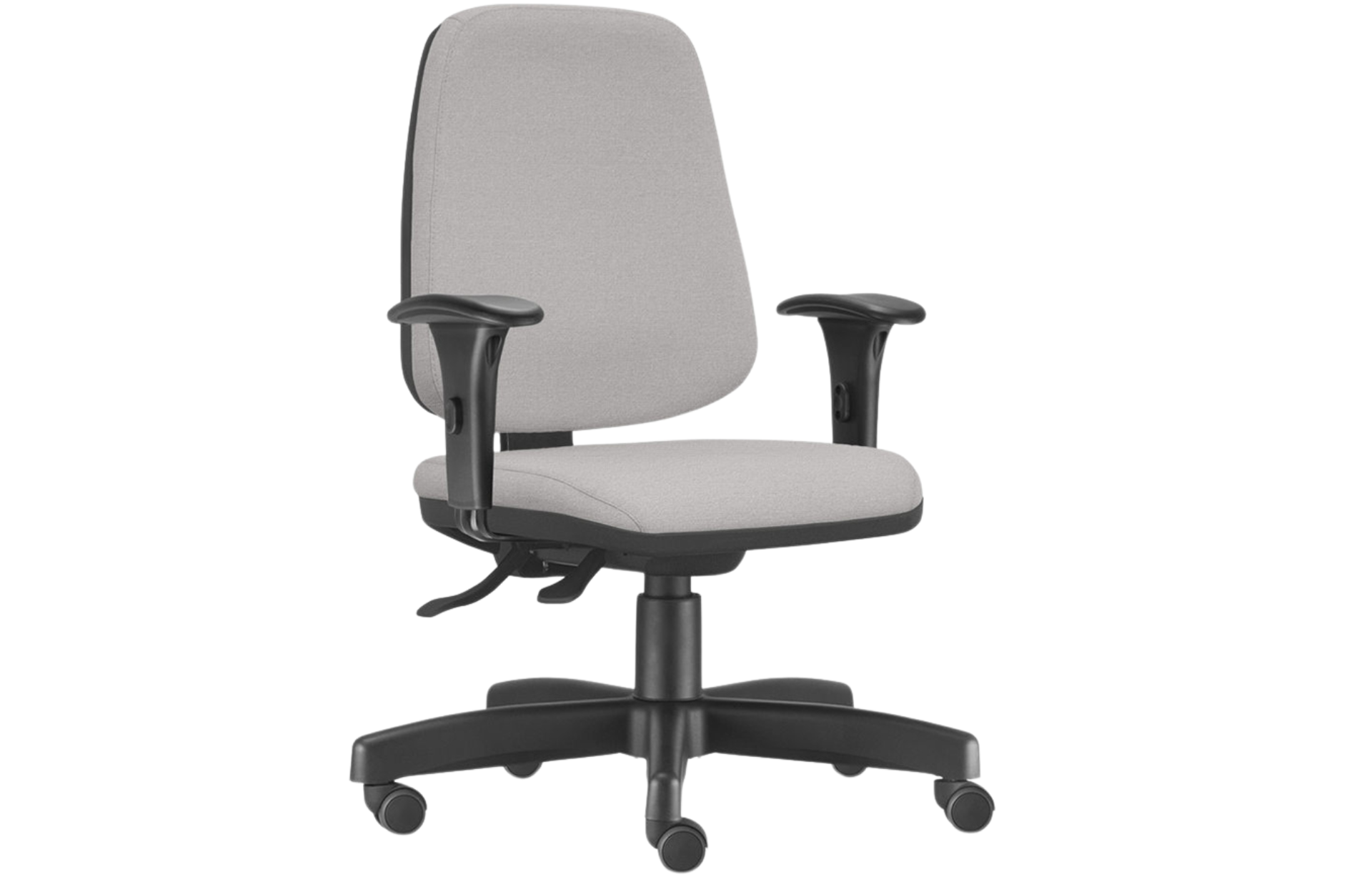 Evolution (contato permanente), ajuste de altura e inclinação do encosto, ajuste de altura do assento. possuí capa para acabamento que permite o encaixe à capa do encosto.