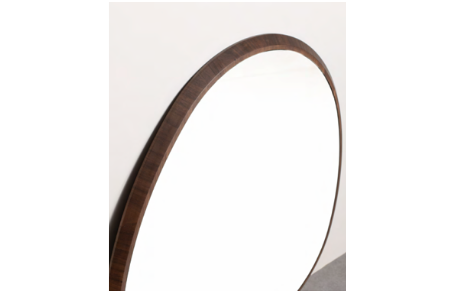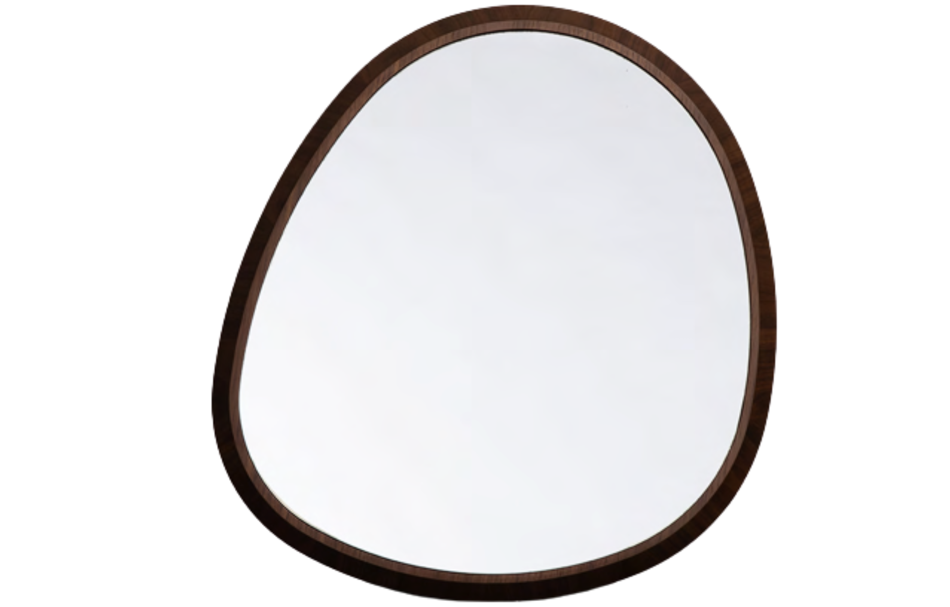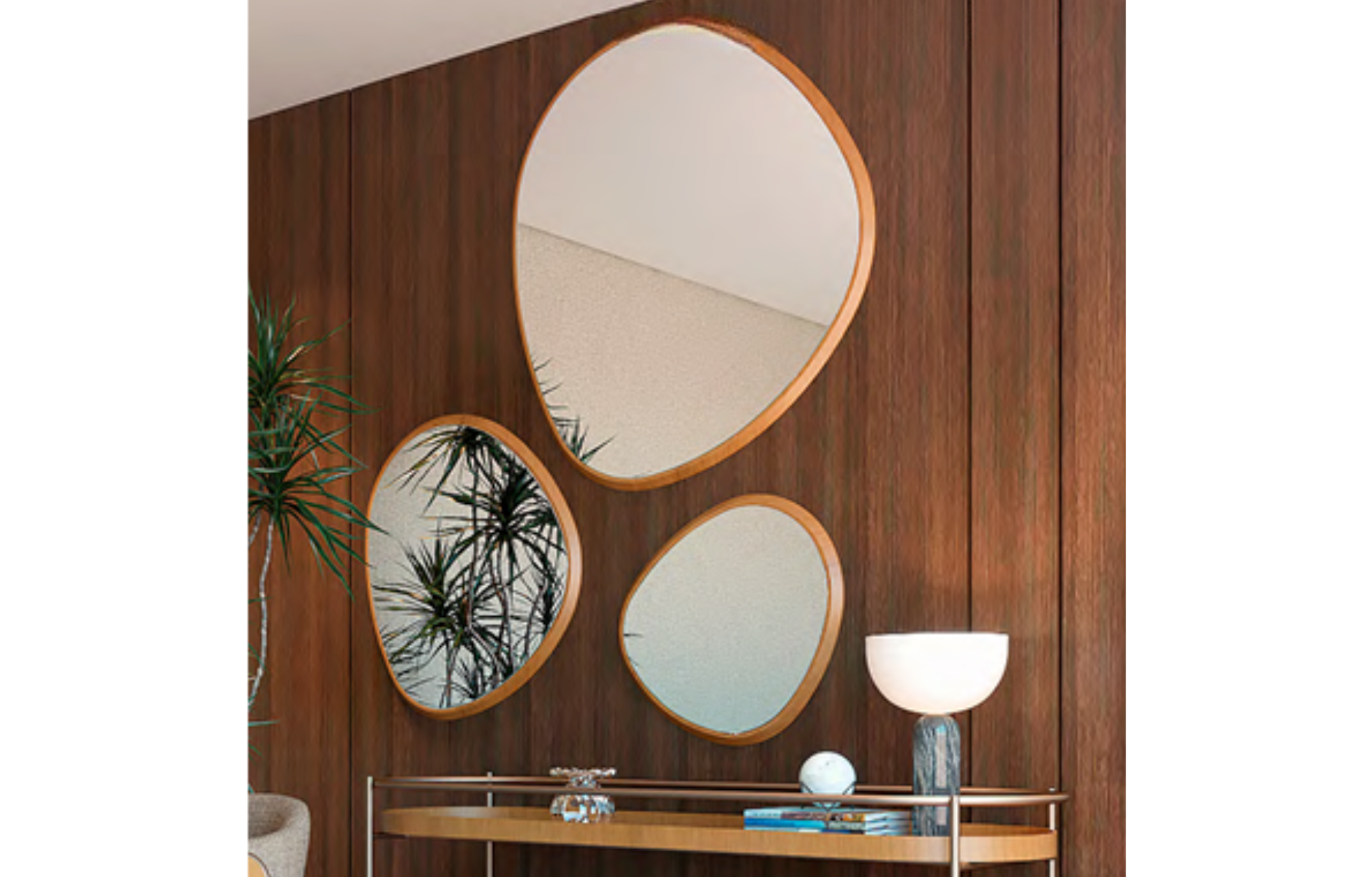 Eseplho Argirita com formato orgânico e moldura em lâmina de madeira natural, perfeito para agregar leveza e elegância aos ambientes.