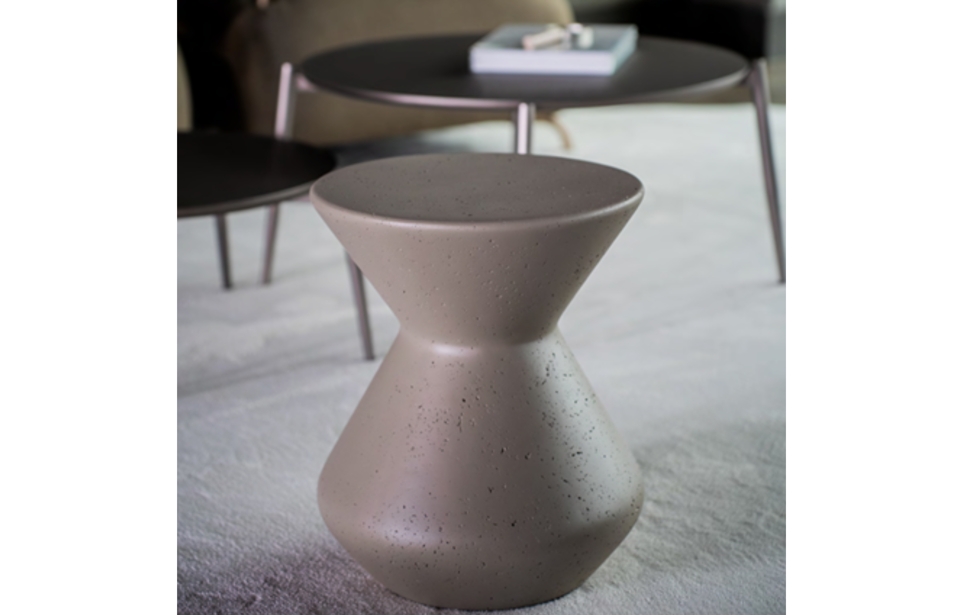 Mesa de Apoio Ponce em cimento tecnológico, disponível nas opções de acabamento natural (Concreto ou café).
