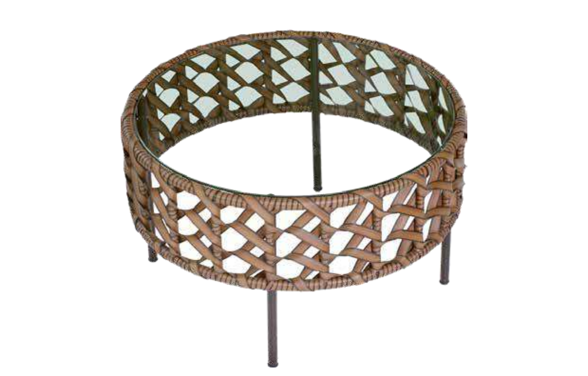 Mesa de Centro Basilica com estrutura em Alumínio e Fibra com tampo em Vidro.