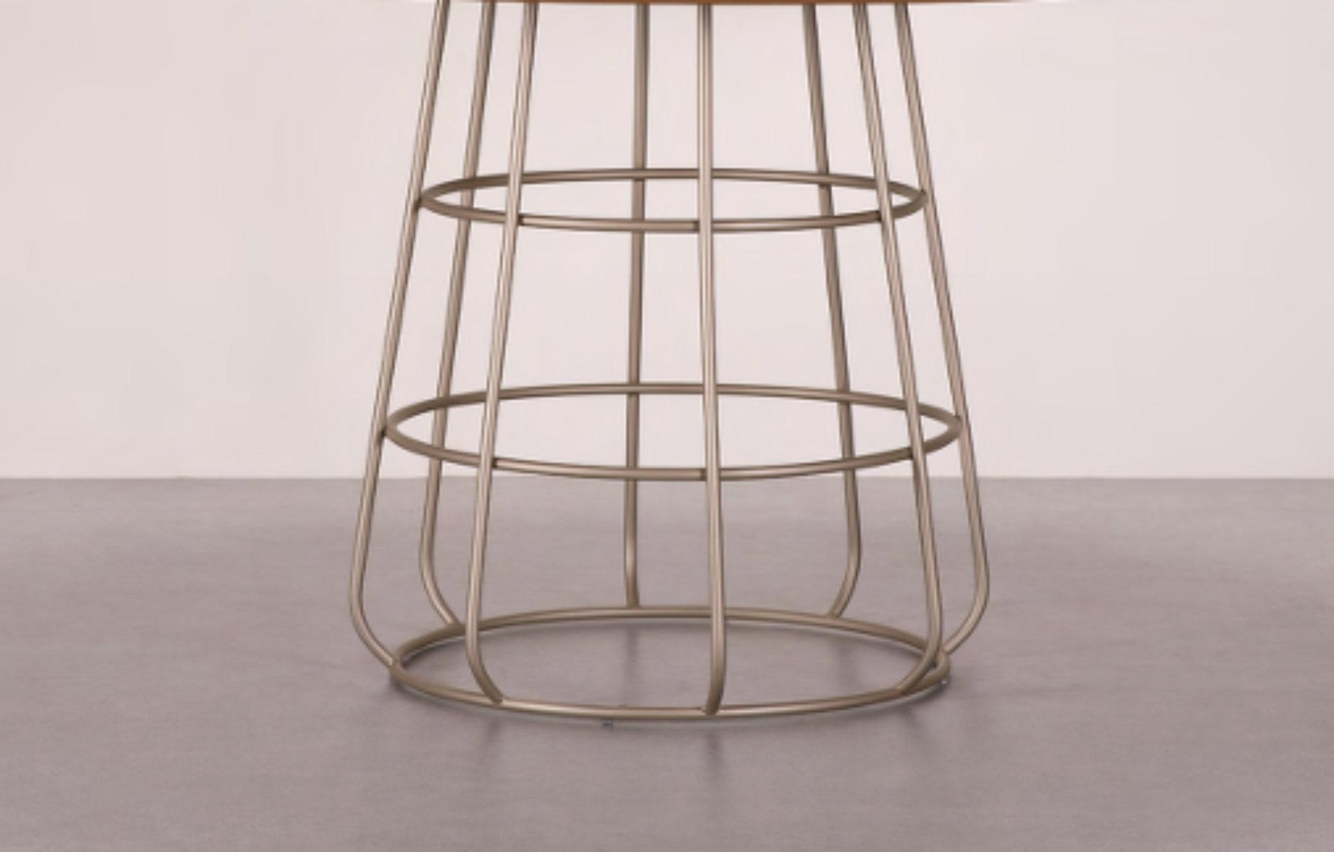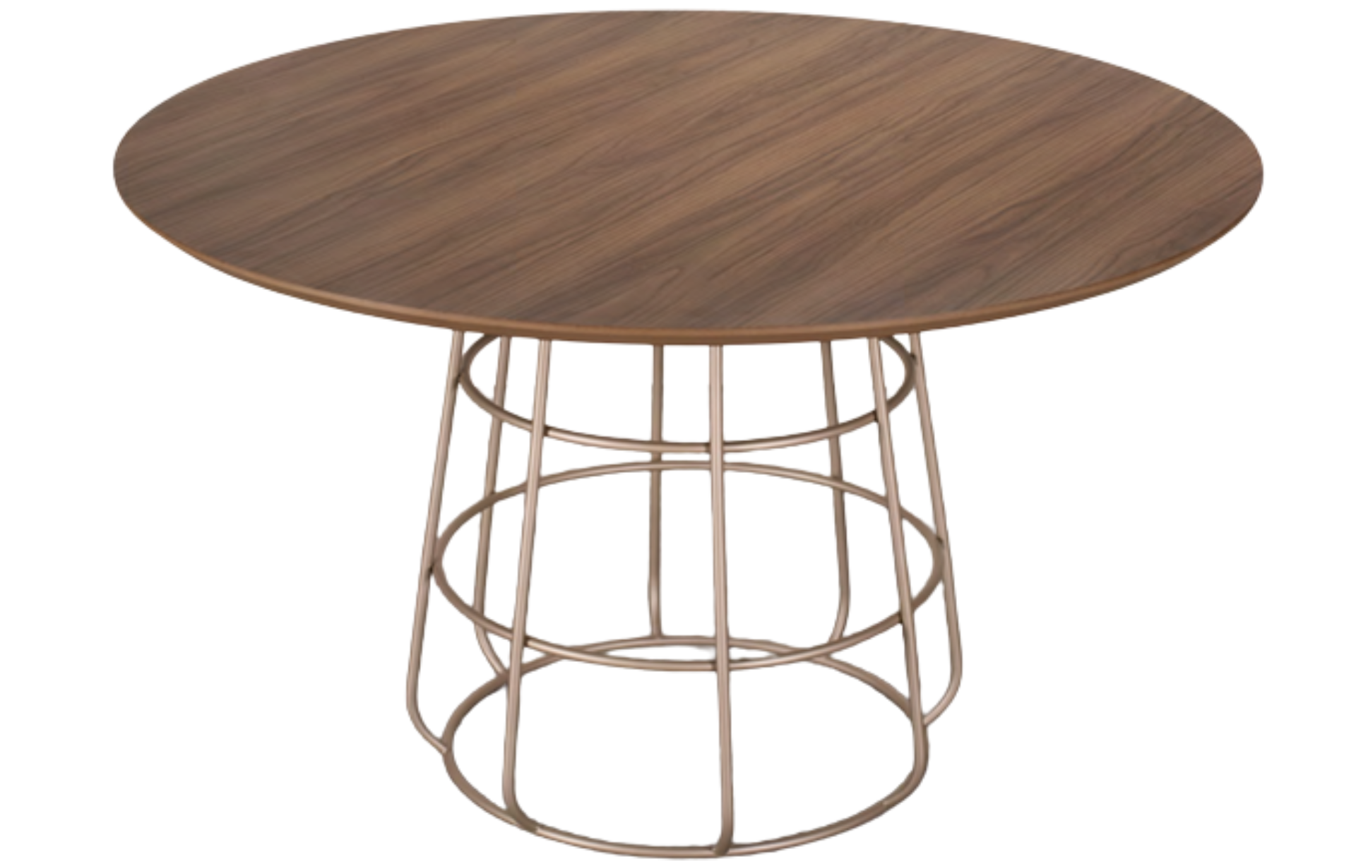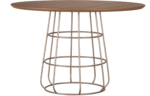 Mesa de Jantar Soul redonda com tampo em lâmina de madeira natural ou BP, e estrutura em aço carbono pintado.