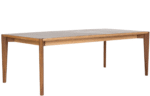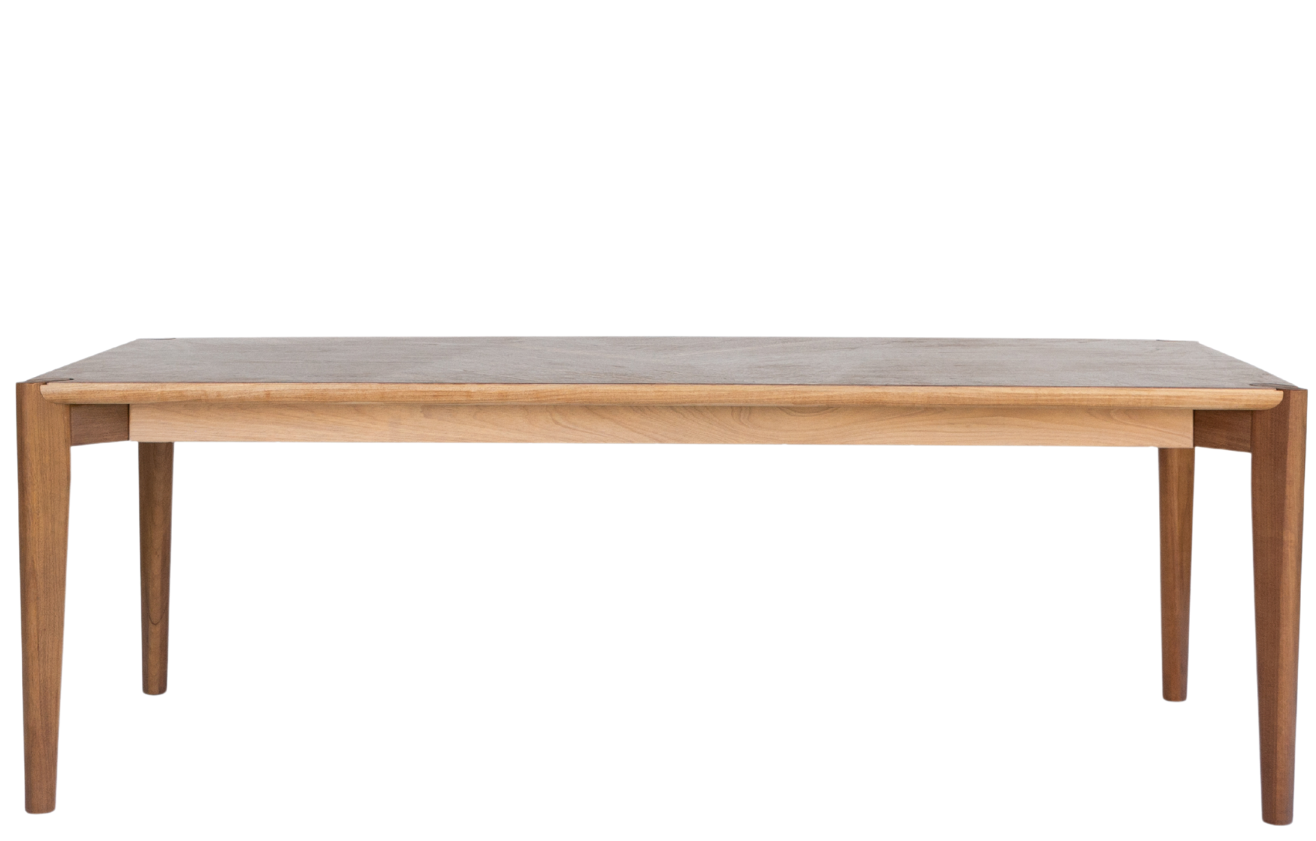 A Mesa de Jantar Win apresenta um design contemporâneo e sofisticado, com um tampo que se destaca pelo padrão geométrico formado pelos veios da madeira. Os pés, com desenho cônico e angulado, conferem leveza e elegância à peça, unindo forma e função de maneira harmoniosa.