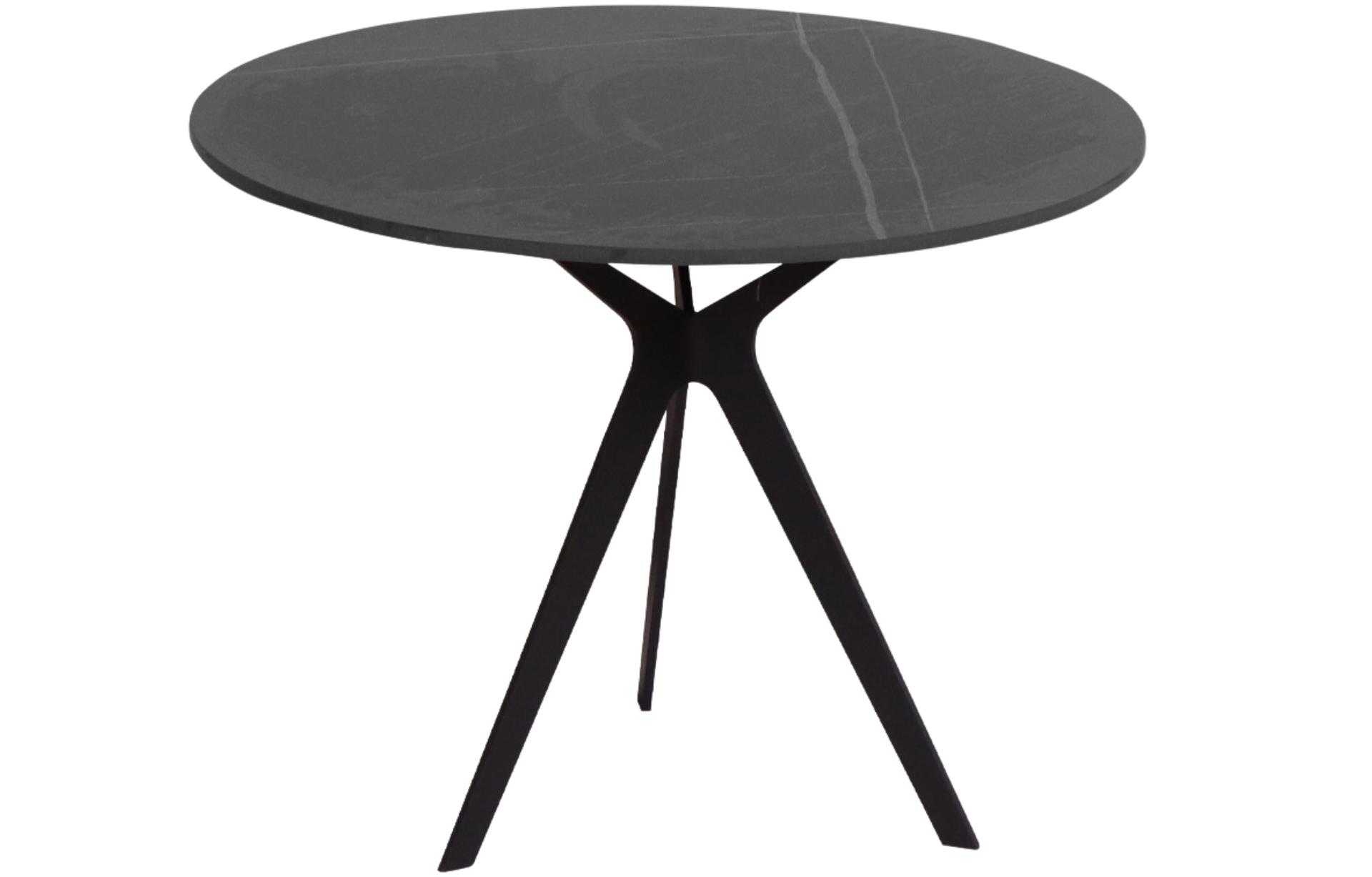 Mesa Lateral Brasília com tampo em pedra sinterizada e estrutura em aço pintado a pó.