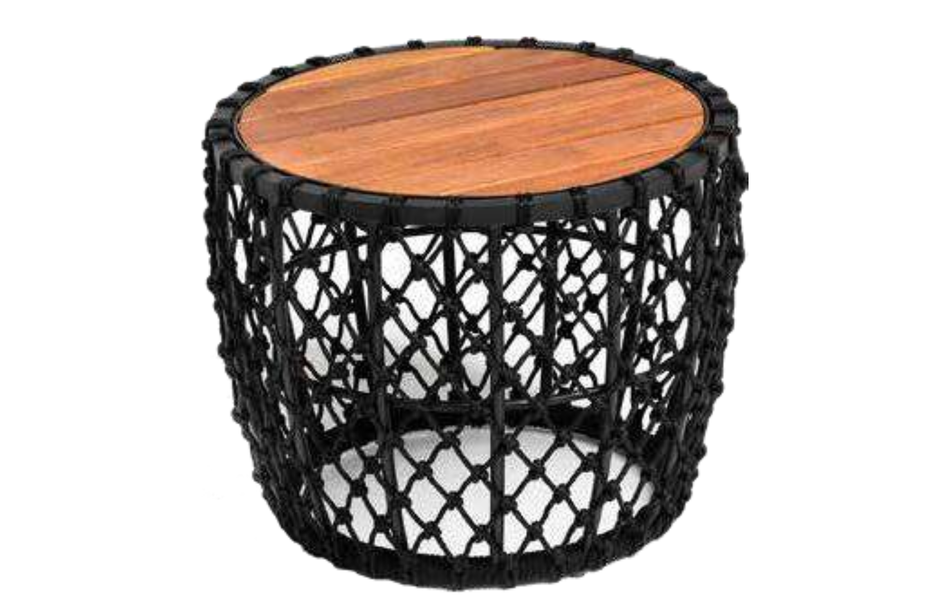 Mesa Lateral Cannet com estrutura em Alumínio e Corda Náutica, assento em Madeira Ripada.