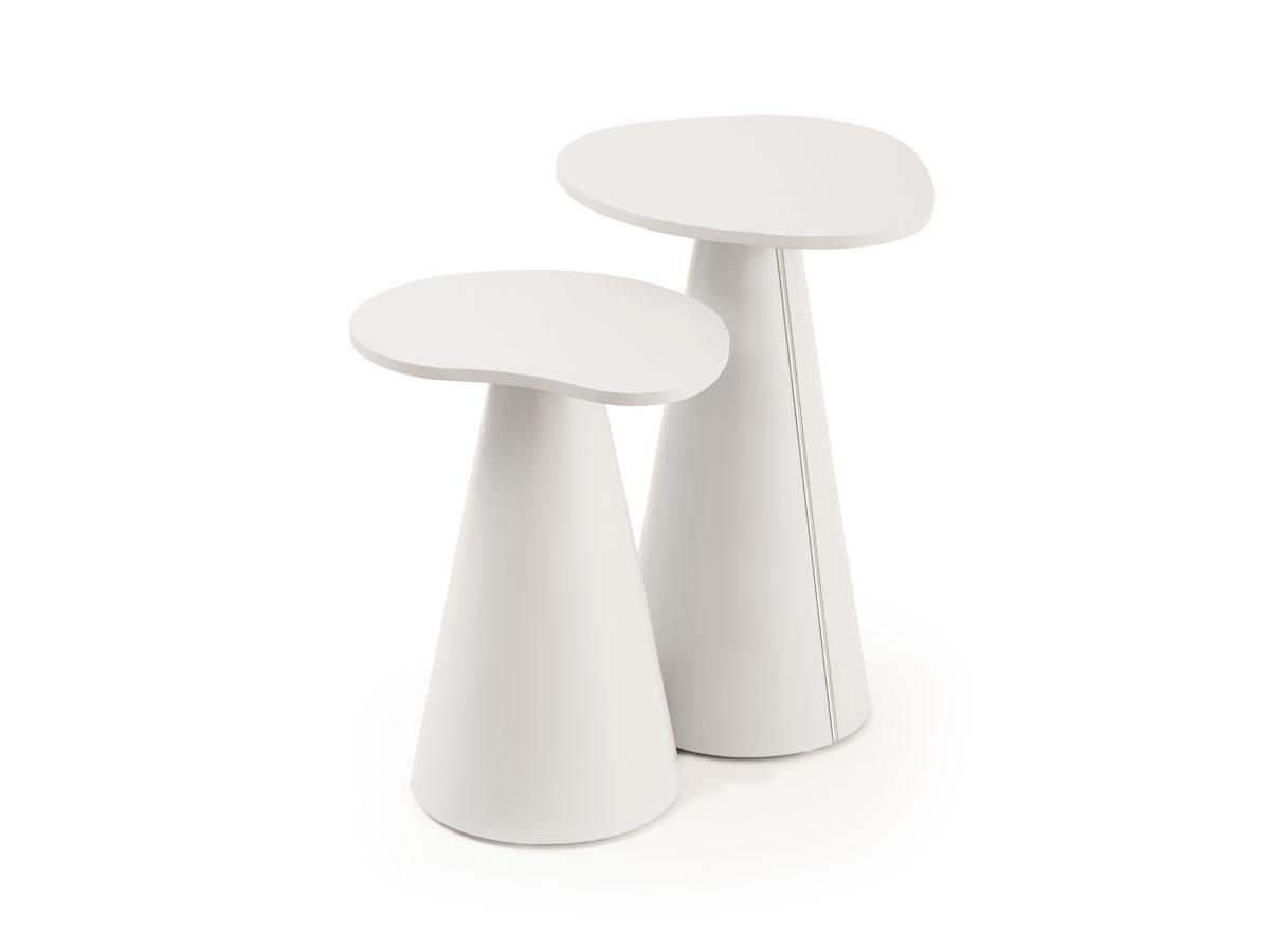 As mesas laterais Monte são confeccionadas em MDF laqueado ou revestido com lâmina natural de madeira. Possuem detalhe em aço carbono em sua base.