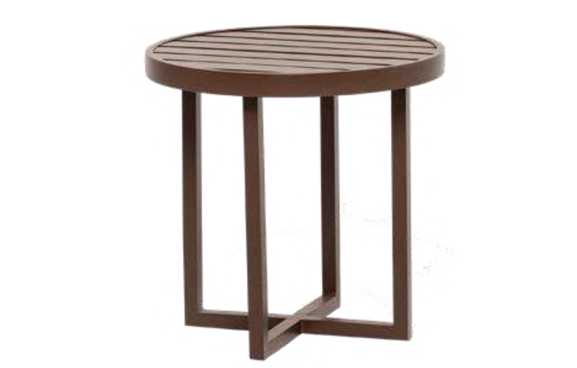 Mesa Lateral Ella com estrutura em Alumínio e tampo em Alumínio Ripado.