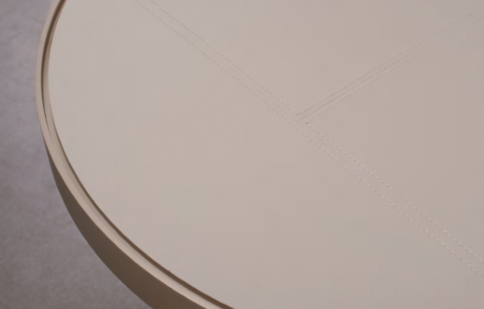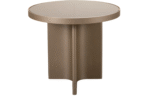 Mesa Lateral Flux com tampo redondo laminado, em laca ou com fundo em recouro. Base laminada ou laca.