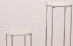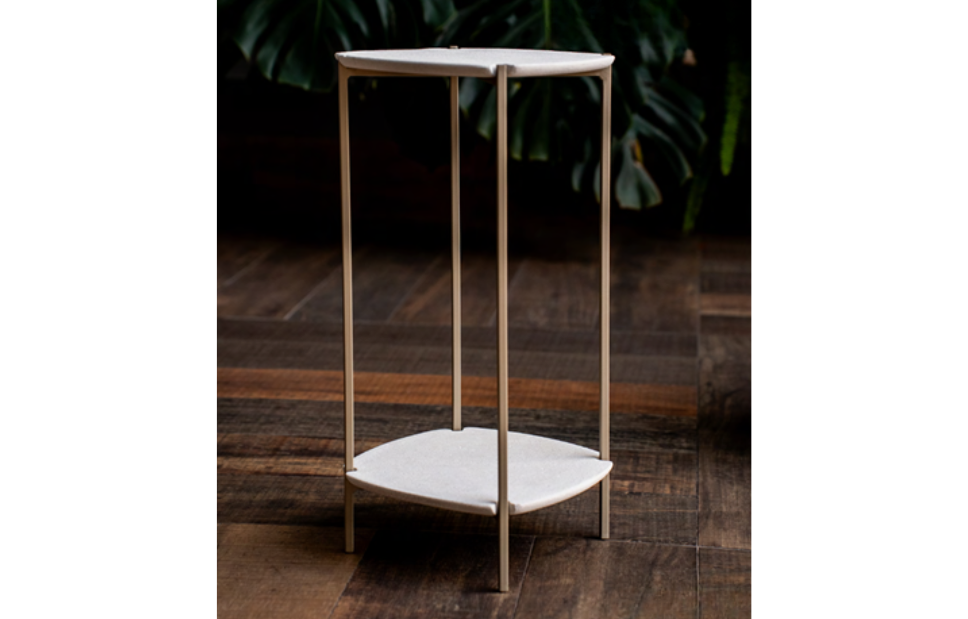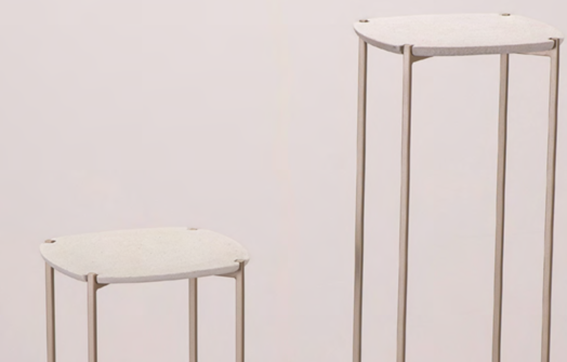 Pedestal Safra com tampos em cimento, hastes em aço carbono pintado.