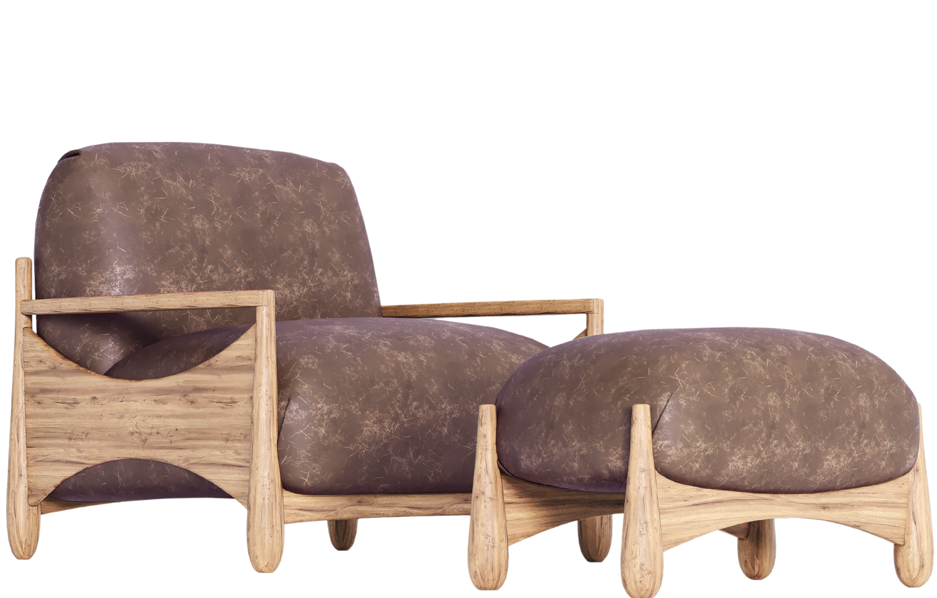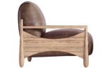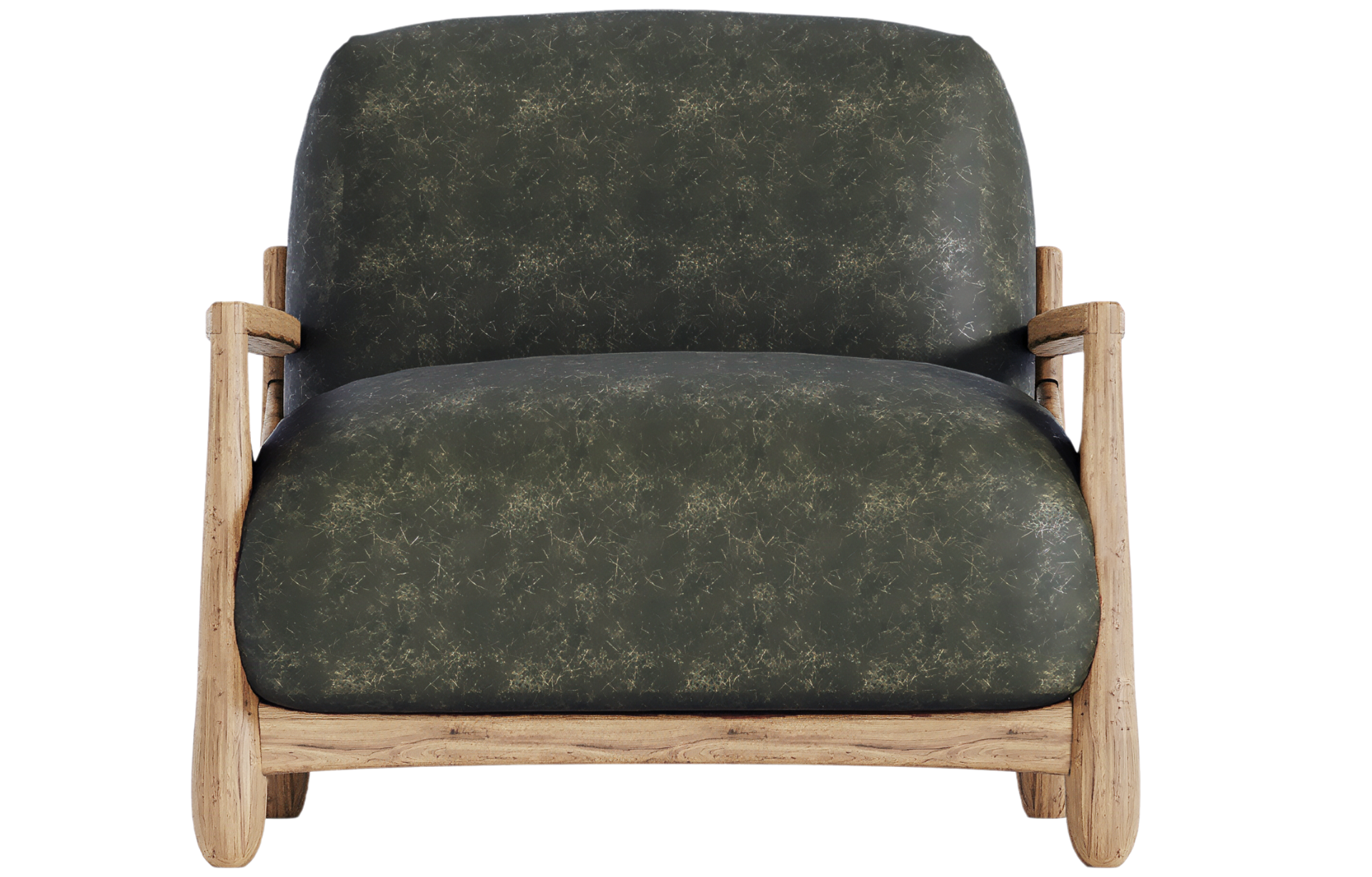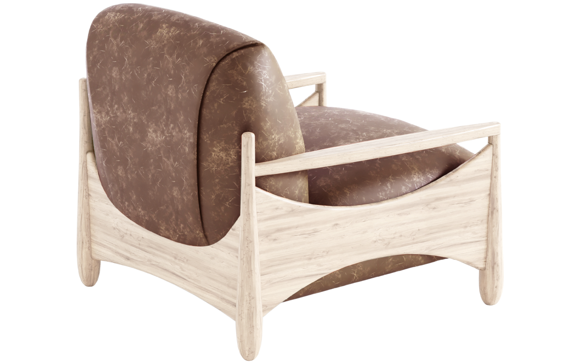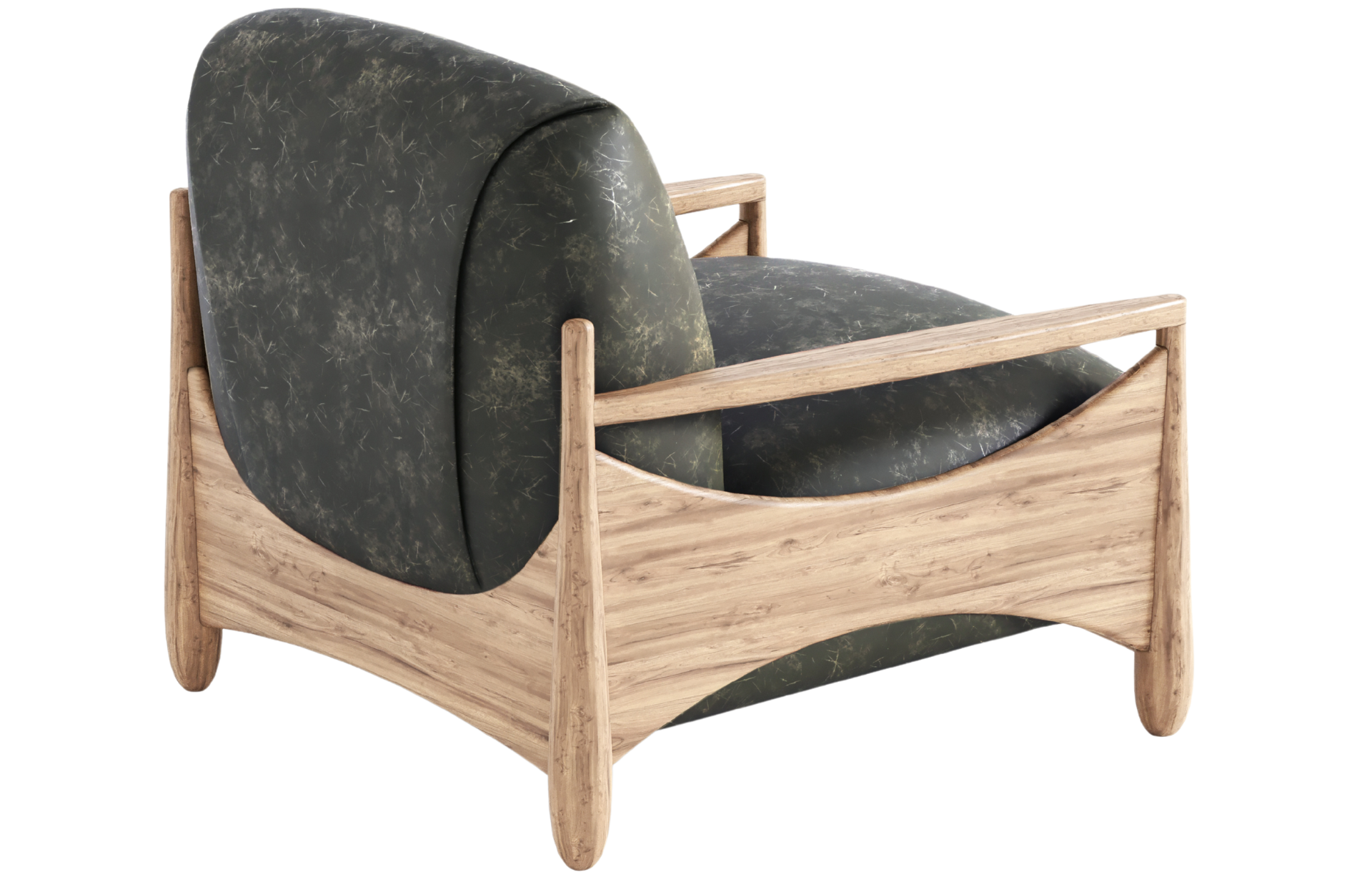 Poltrona Arad com base em madeira, assento e encosto estofados.
