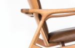 Poltrona Barry com design de linhas fluidas e orgânicas, possui estrutura em madeira maciça. O assento e encosto estofados em couro conferem um ar de sofisticação e conforto. A peça é ideal para compor salas de estar, escritórios ou ambientes de leitura com um toque moderno.