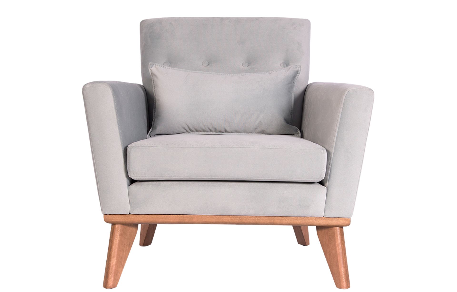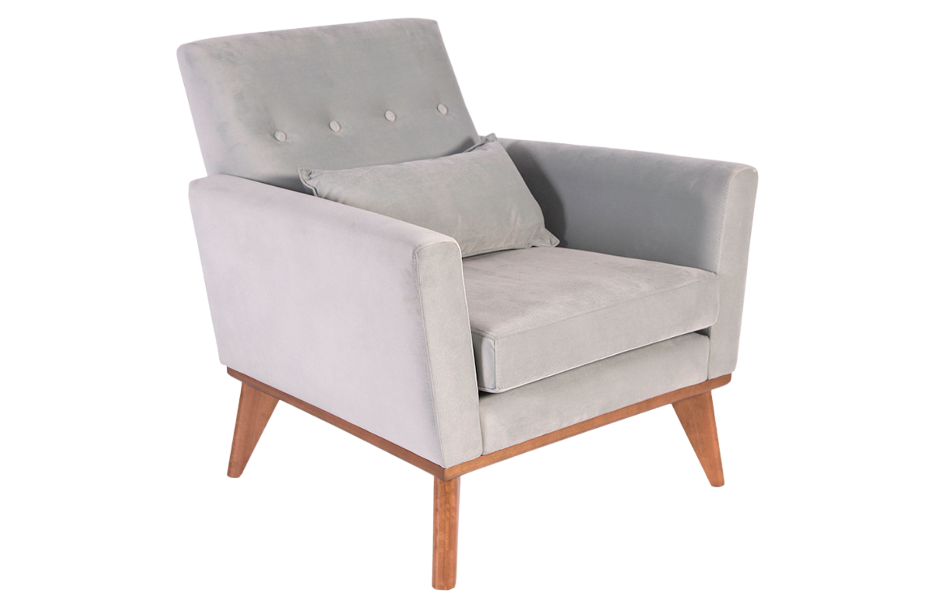 Poltrona Katrine com pés tingidos e encosto e assento em estofamento.
