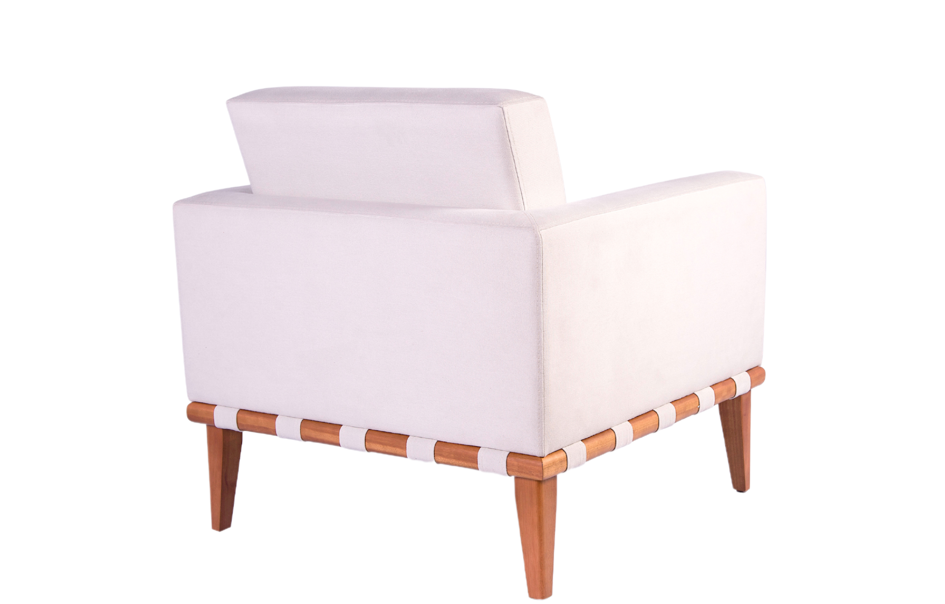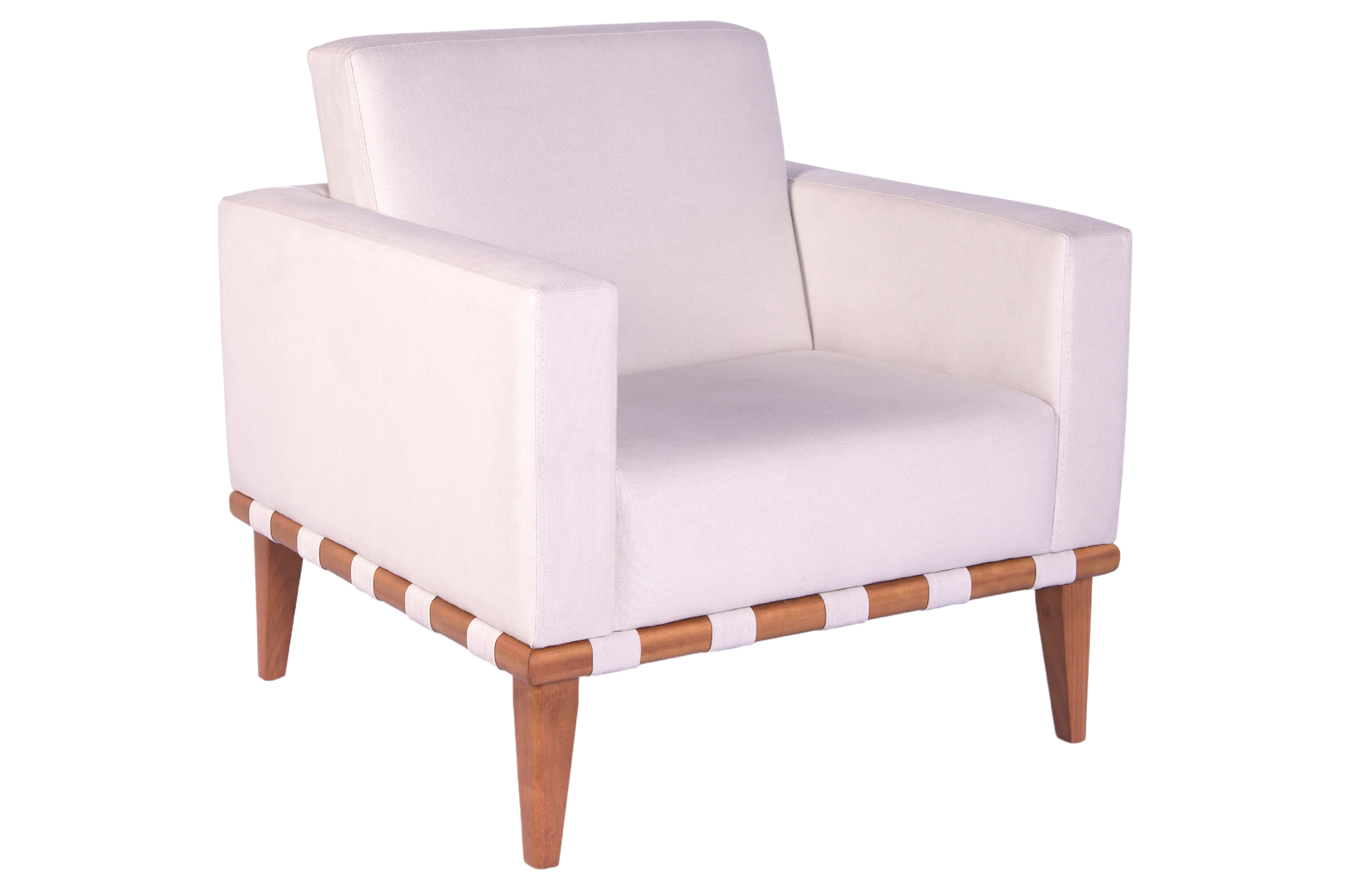 Poltrona Lecce com pés em madeira tingida, encosto e assentos em estofamento.