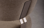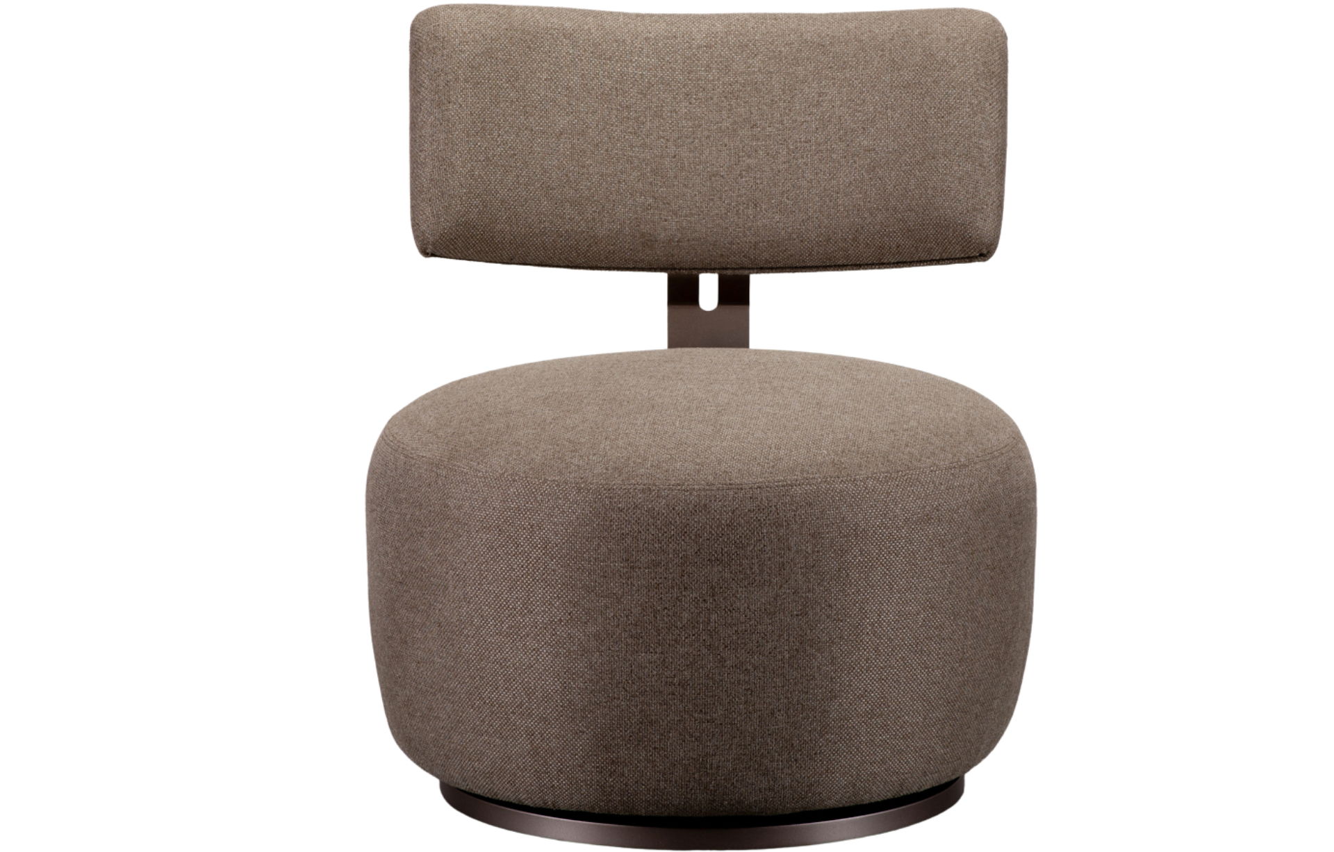Poltrona Ronny com Assento redondo e encosto estofado, com base giratória. Altura do chão ao assento: 41cm.